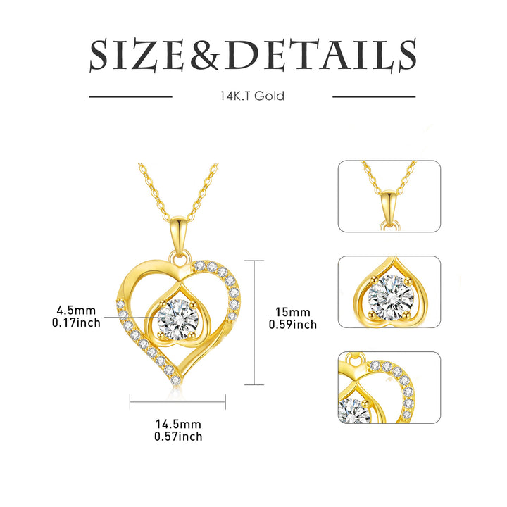 14K gold; round heart-shaped Moissanite; includes chain; measurements as per standard pendant dimensions.