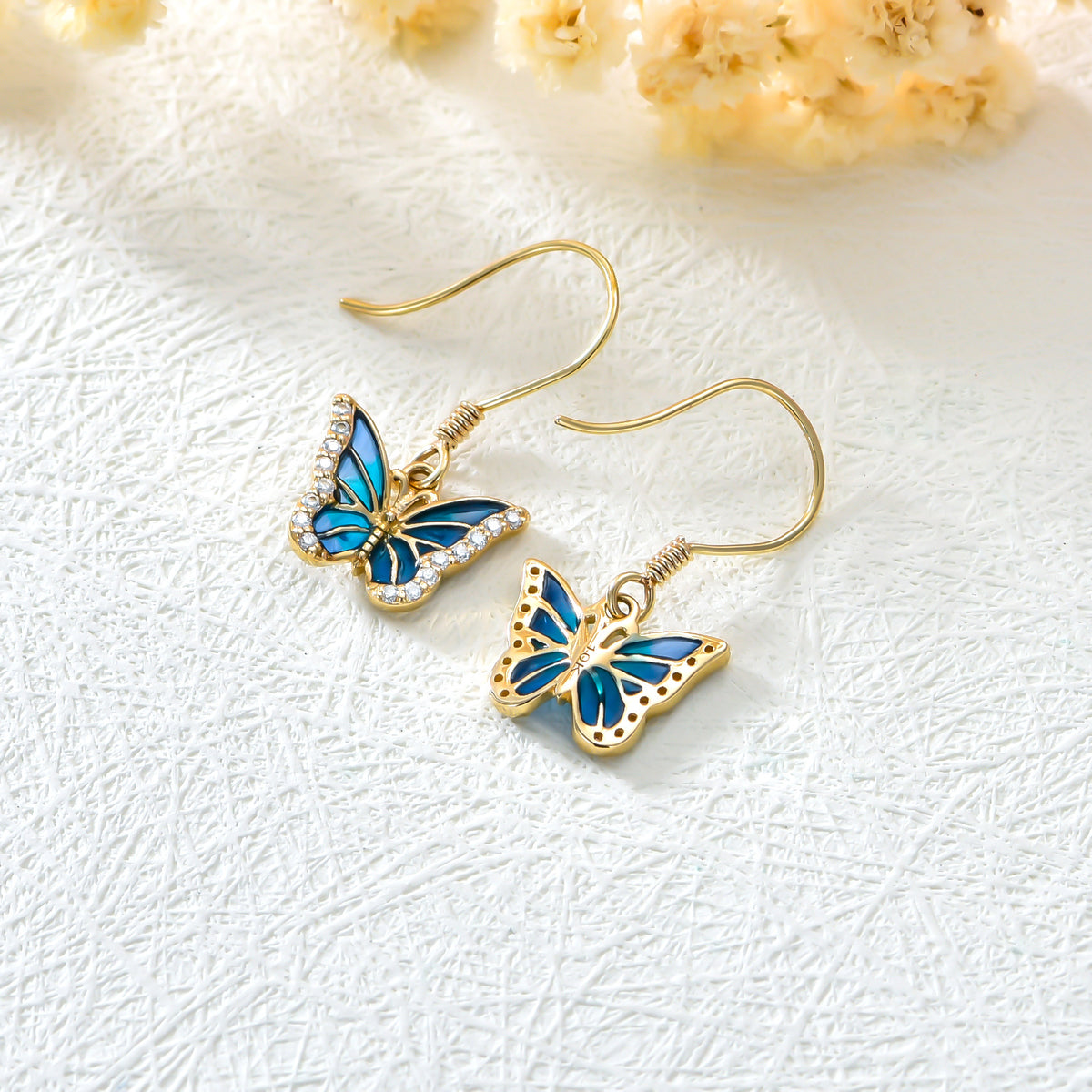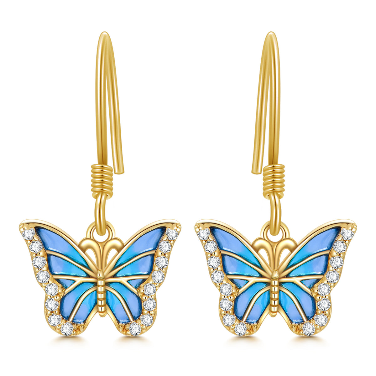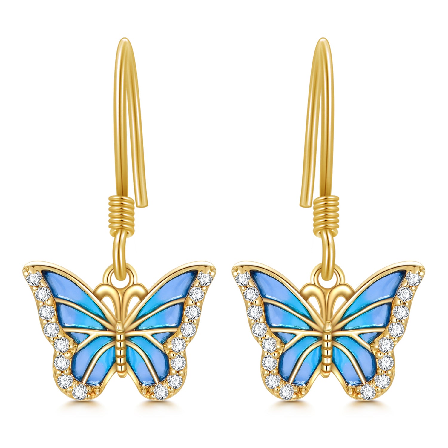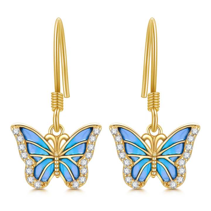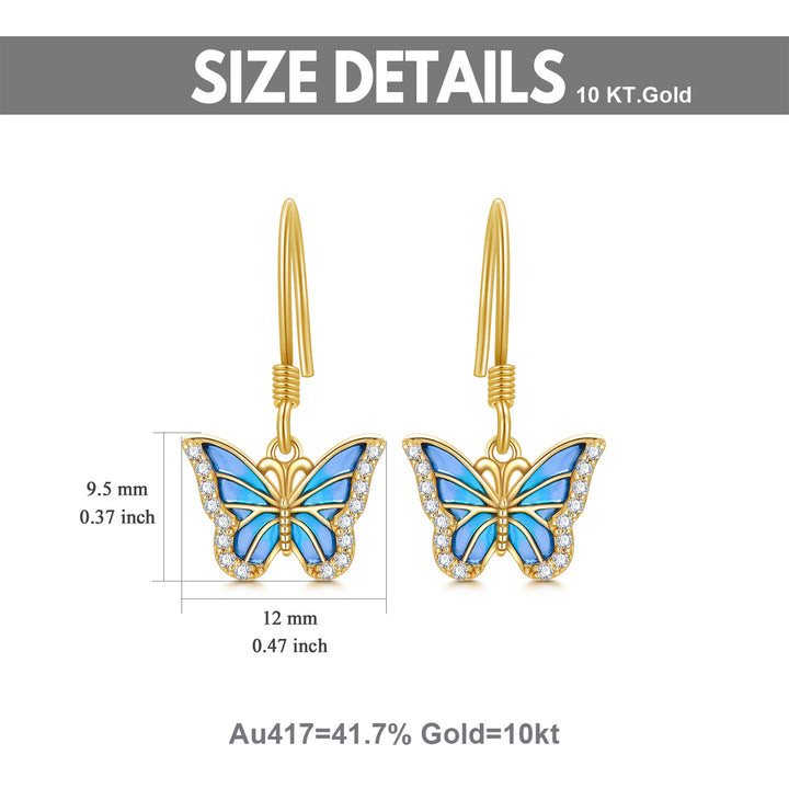Crafted from solid 10K Gold. These are Drop Earrings featuring a Butterfly design, set with Moissanite stones.