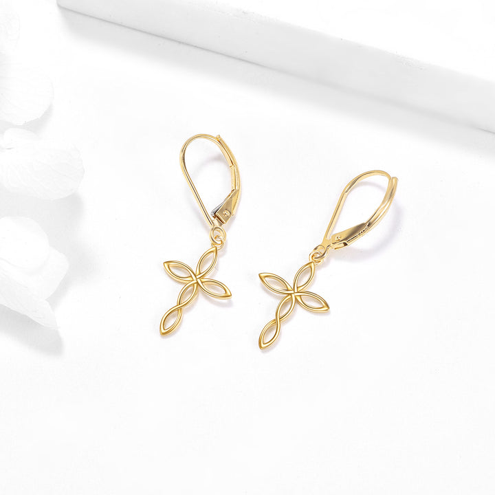 14K Gold Cross Drop Earrings