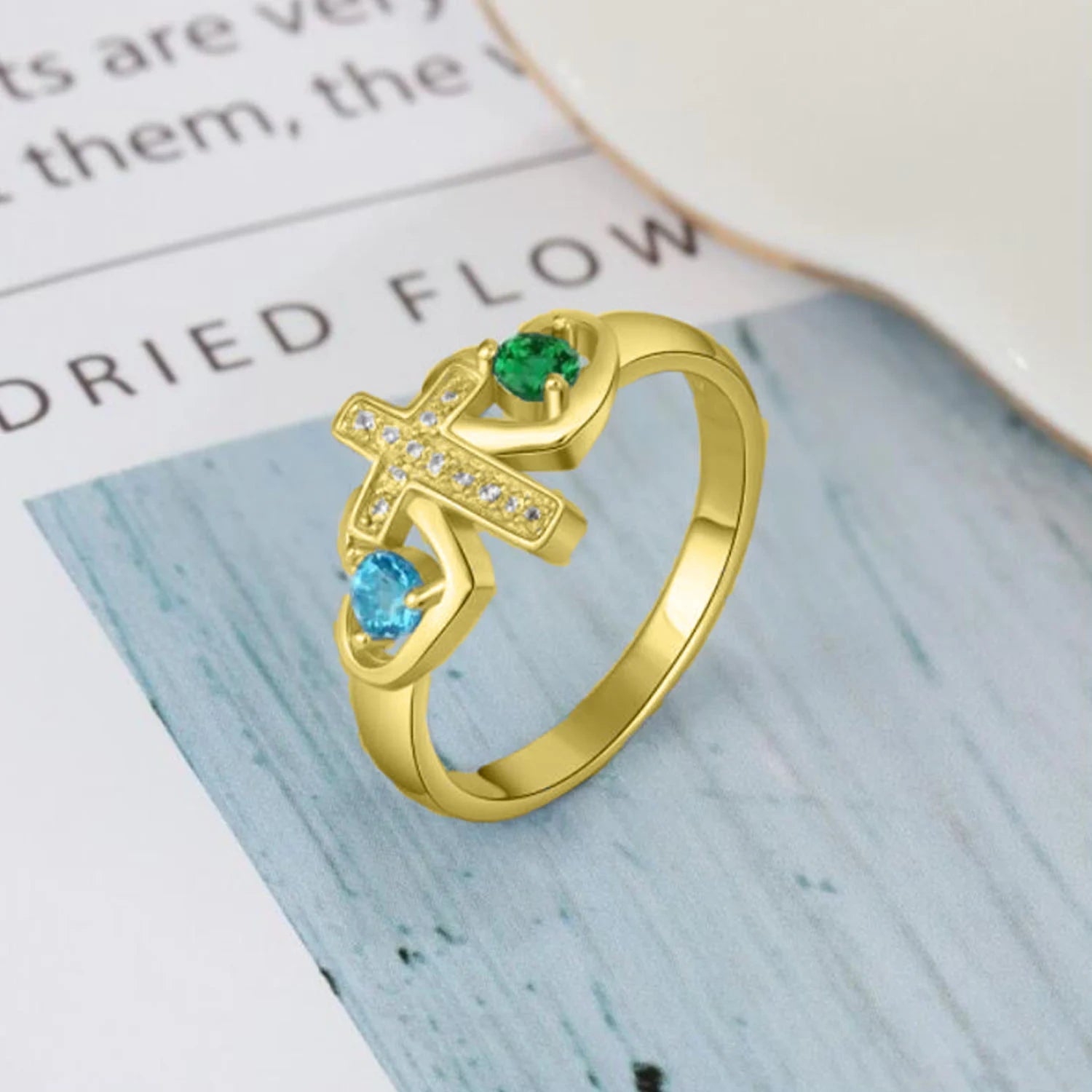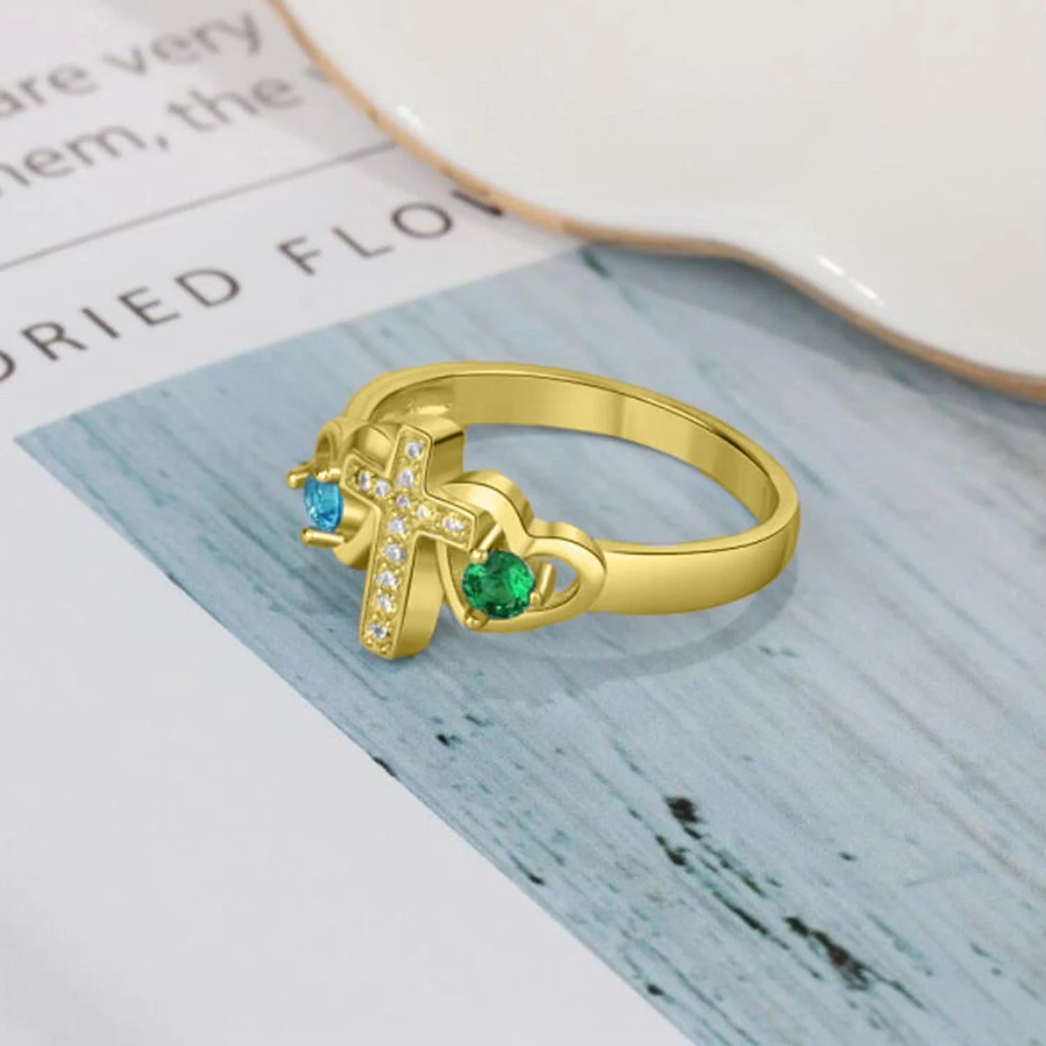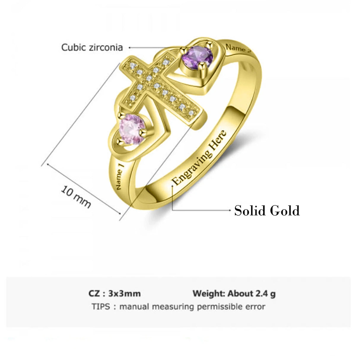 This Ring is crafted from High-Quality 10K Gold and is adorned with a Shimmering Crystal Cross Centerpiece.