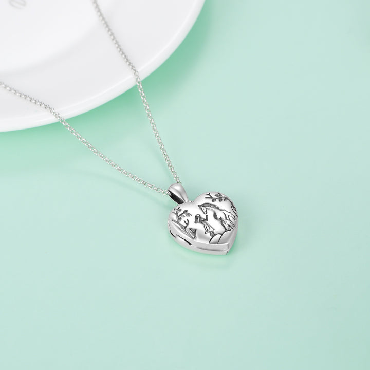 925 Sterling Silver Heart And Horse Personalized Photo Locket Necklace For Women