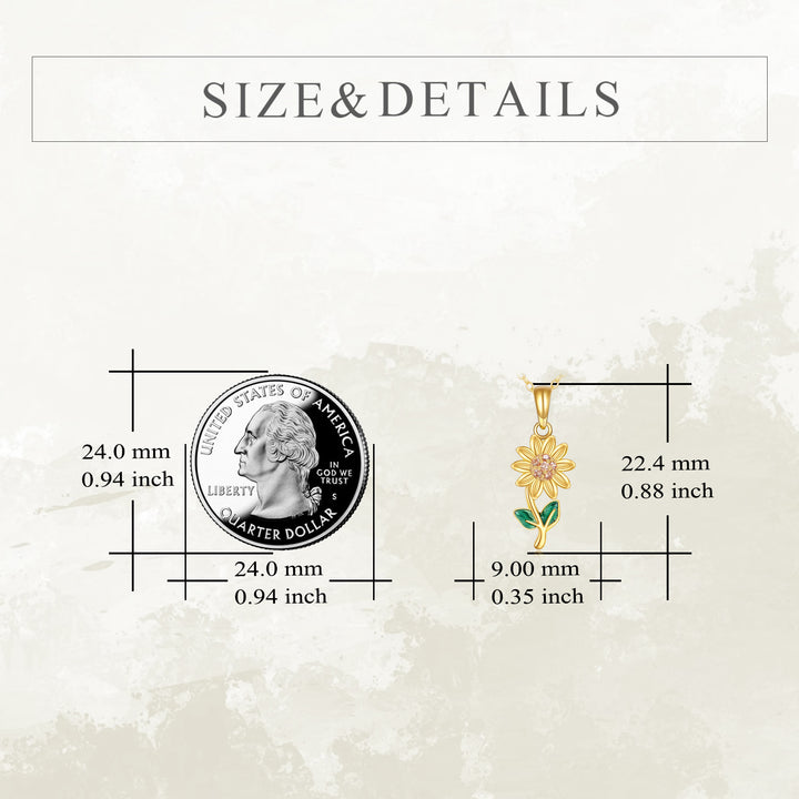 This 14K Gold Pink Cubic Zirconia Sunflower Pendant Necklace by YFN captures joyful radiance and feminine charm. The sunflower, a symbol of positivity and warmth, blooms in soft pink tones accentuated by sparkling cubic zirconia that dance in the light. Crafted in luxurious 14K gold, the pendant brings a lively, uplifting energy to any ensemble. Ideal for women who embrace expressive, colorful jewelry, it adds elegance to both everyday and special-occasion wardrobes. This meaningful and eye-catching piece celebrates beauty, optimism, and personal expression.
