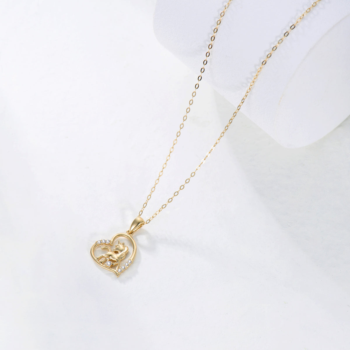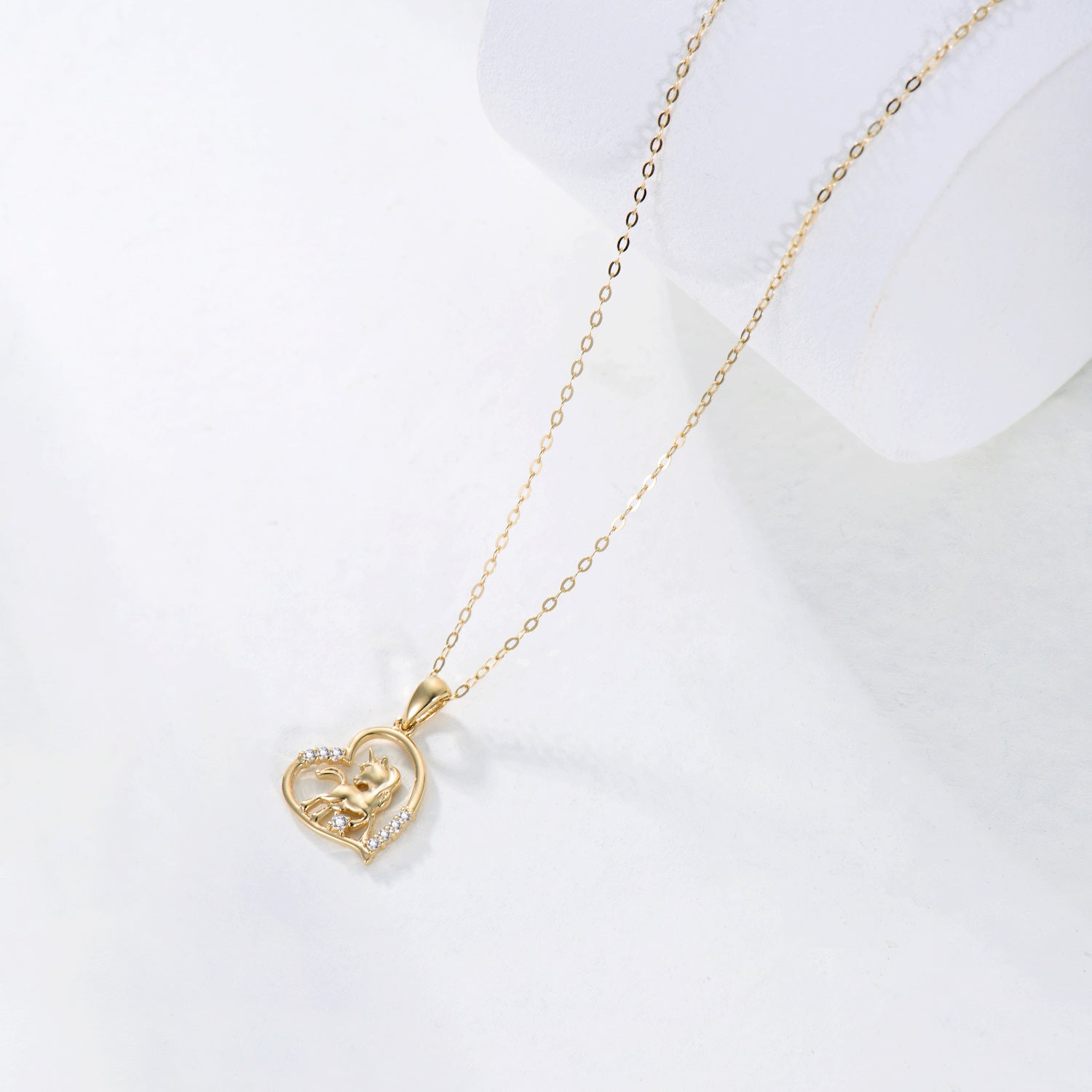 14K Gold Moissanite Heart & Unicorn Pendant Necklace