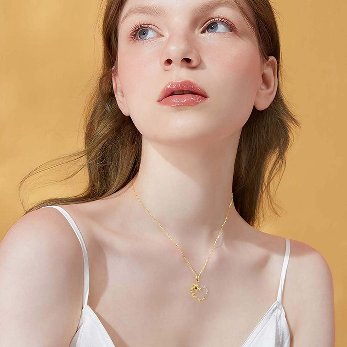 This 14K Gold Cubic Zirconia Horse Heart Necklace for Women by YFN is an exquisite piece that elegantly expresses a unique blend of grace and passion. Crafted with high-quality 14K Gold, this pendant necklace features a captivating heart and horse design, symbolizing love and freedom. Adorned with meticulously cut, sparkling Cubic Zirconia stones, this piece promises to add a touch of glamour and sophistication to any outfit, ensuring she shines brightly in every moment.