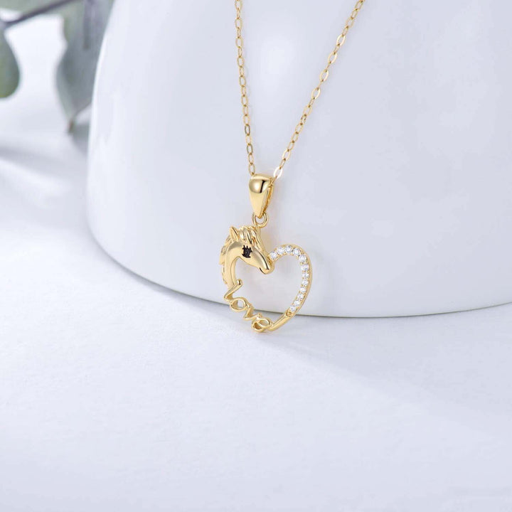 14K Gold Cubic Zirconia Horse Heart Necklace for Women