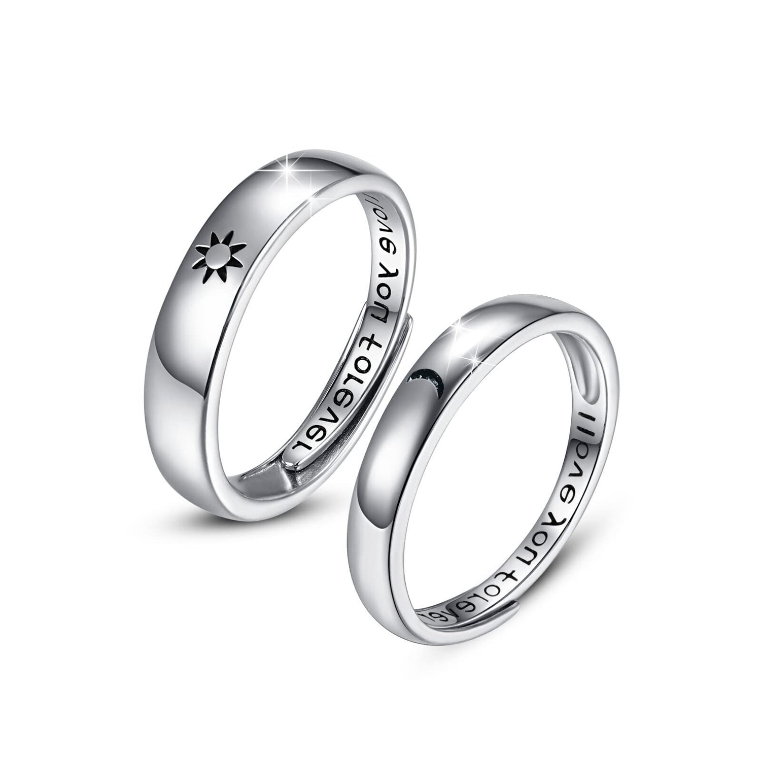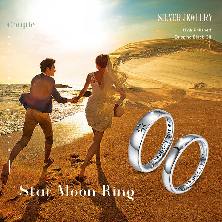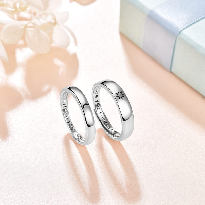 Sterling Silver Moon & Sun Open Ring with Engraved Word