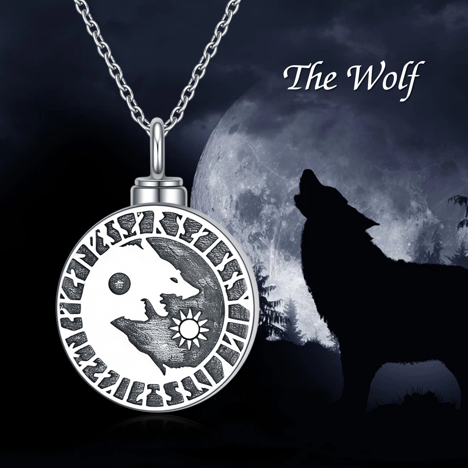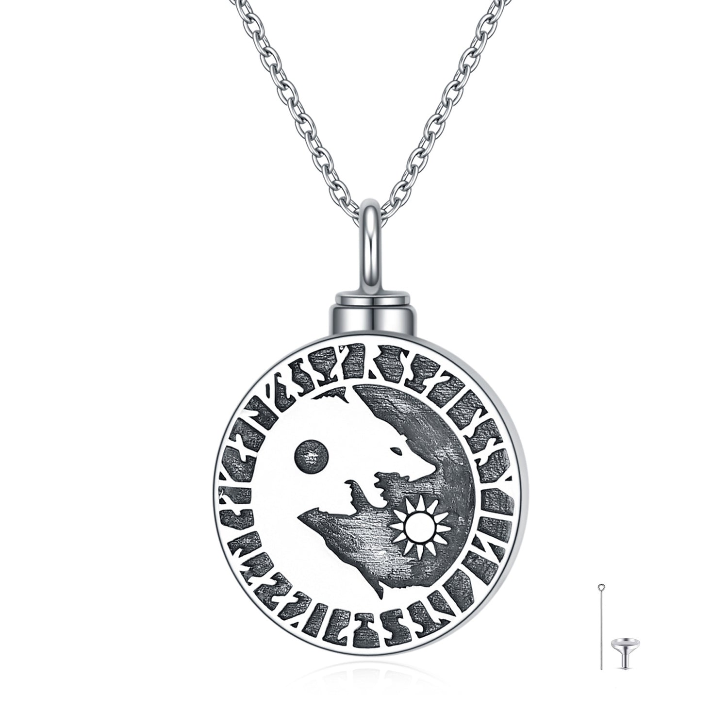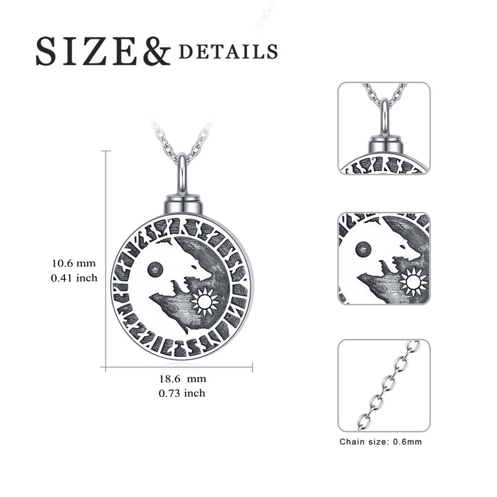 Sterling Silver Wolf & Sun Viking Rune Urn Necklace for Ashes