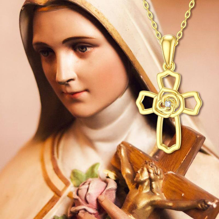 14K Gold Moissanite Cross Pendant Necklace