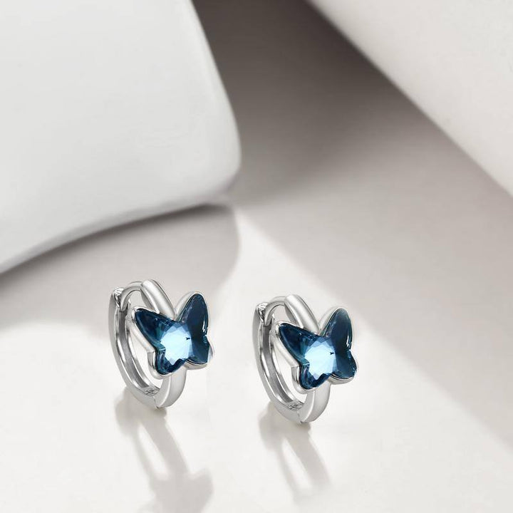 Sterling Silver Crystal Butterfly Hoop Earrings