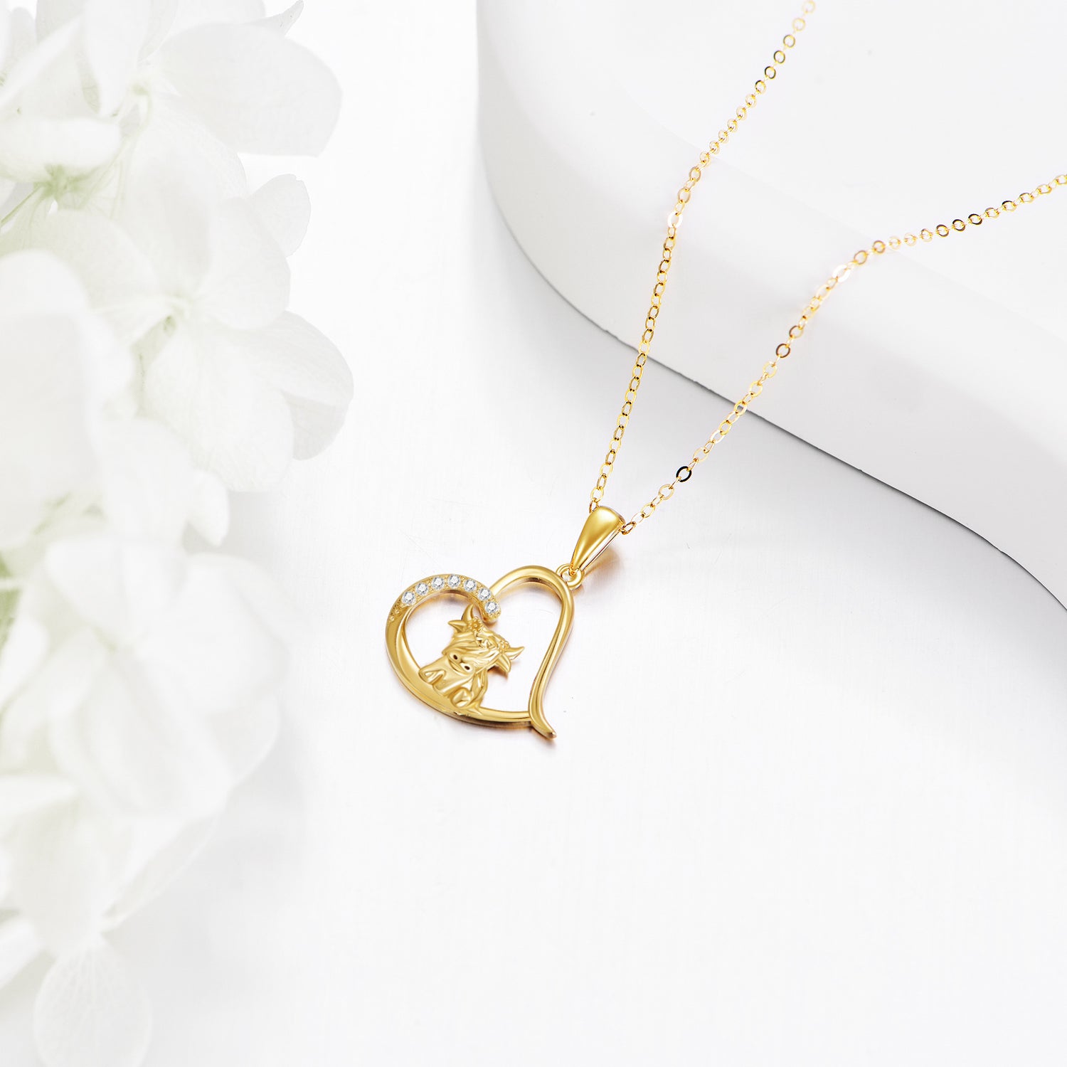 14K Gold Cubic Zirconia Highland Cow & Heart Pendant Necklace