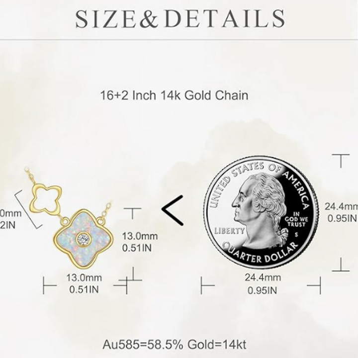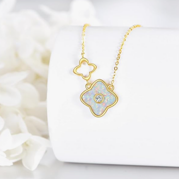 14K Gold Opal Four Leaf Clover Necklace for Women