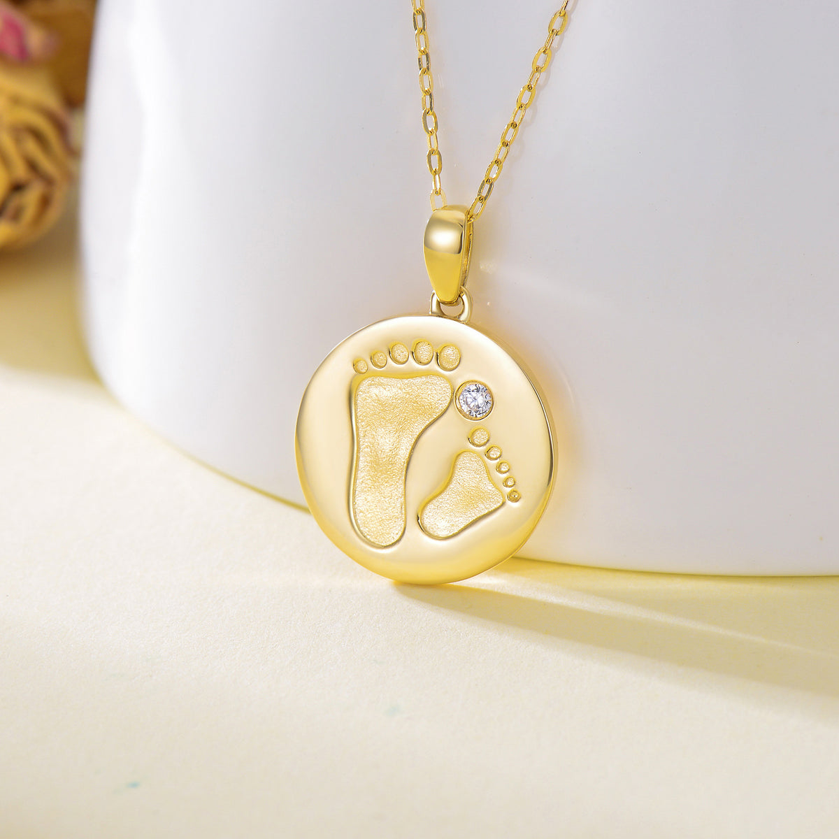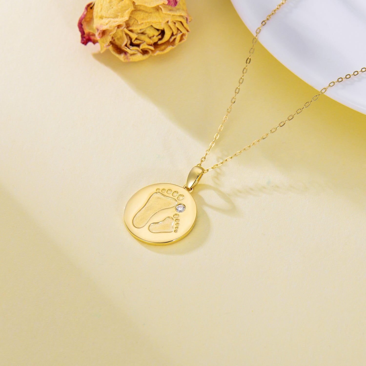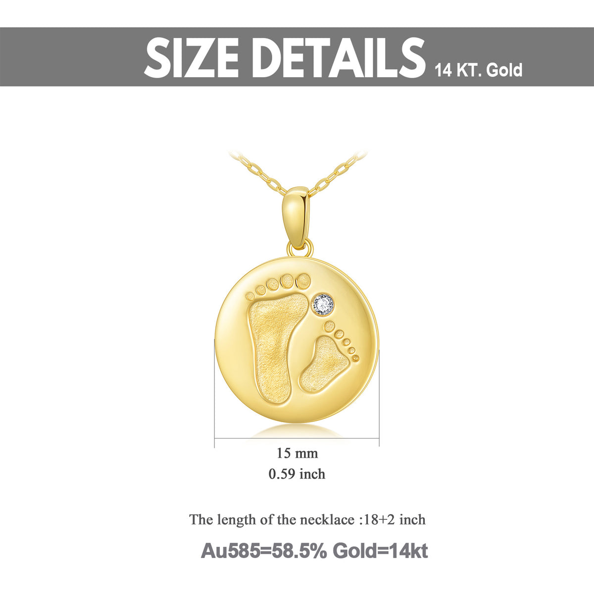 14K gold; Cubic Zirconia; round coin pendant; chain included.