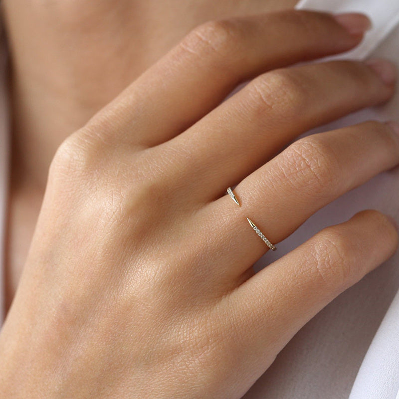 14K gold open ring set with round diamond totaling 0.2 ctw. Adjustable design.