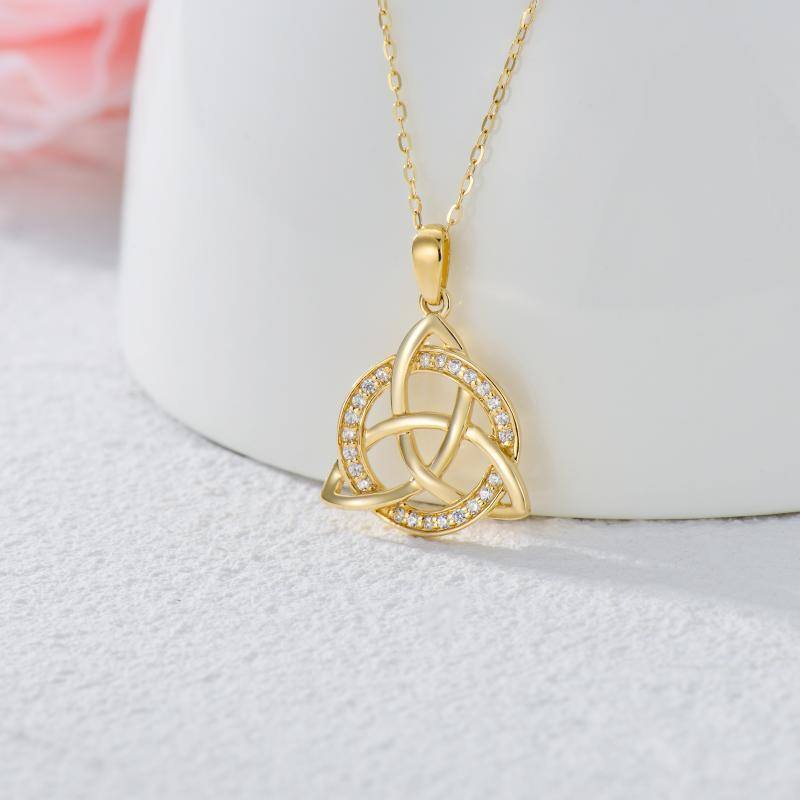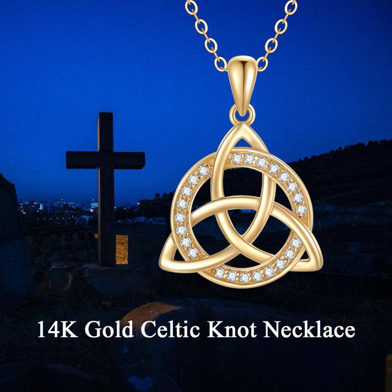 14K gold; cubic zirconia; Celtic knot pendant; gold chain.