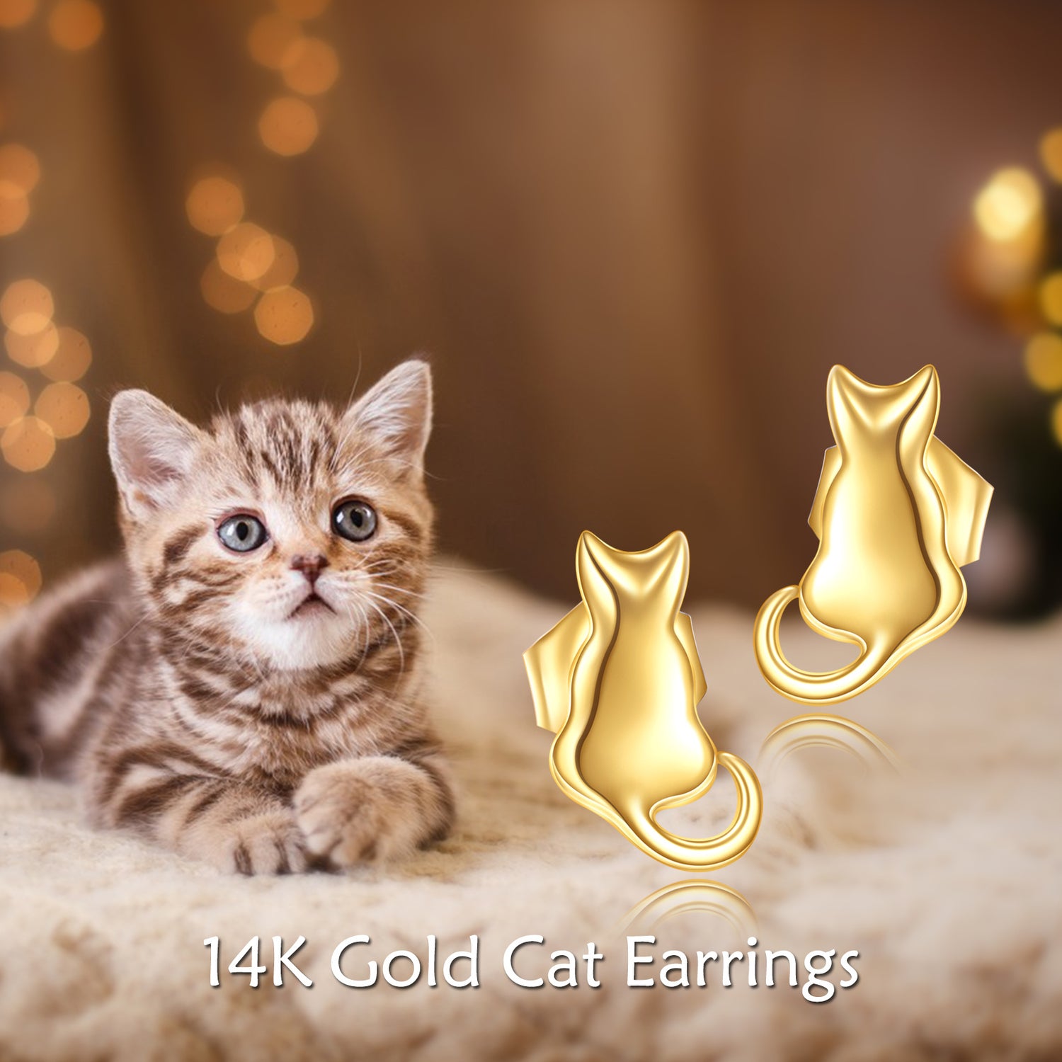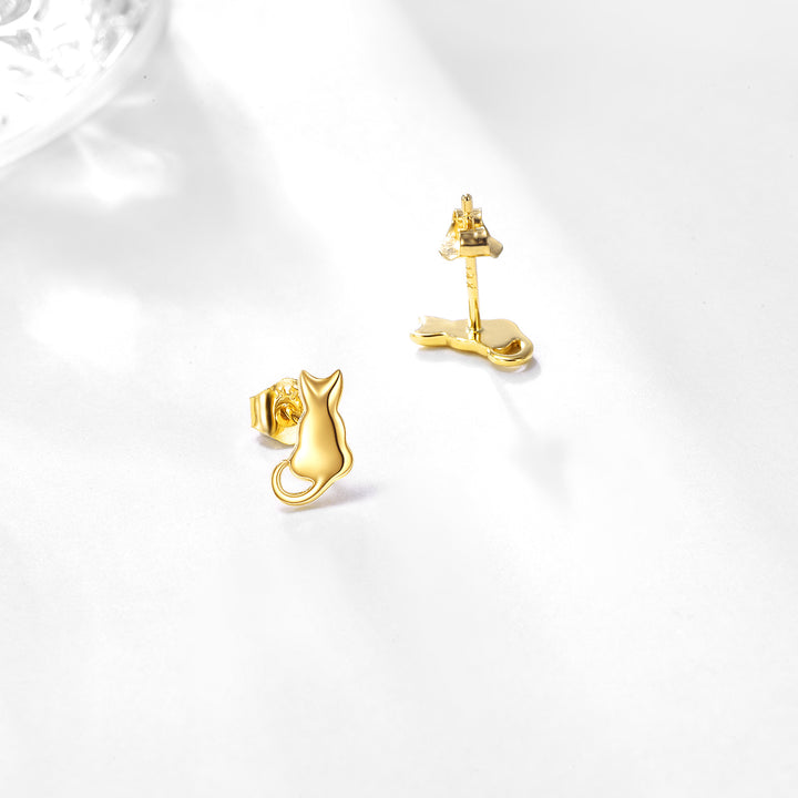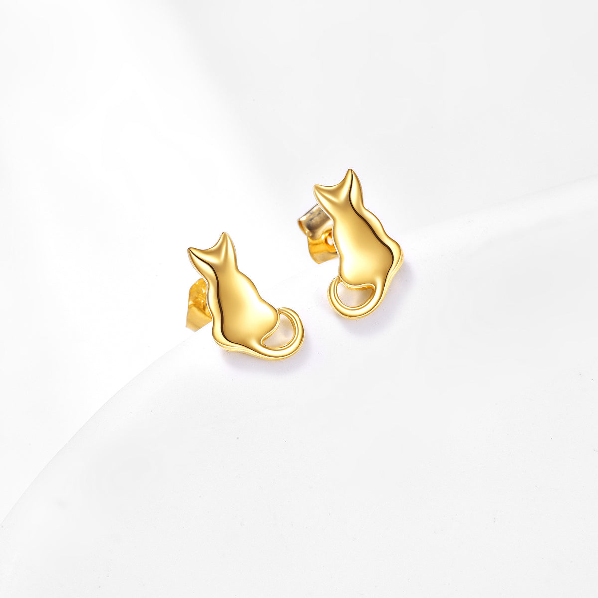 These no-stone Women's Stud Earrings are crafted from Genuine 14K Gold, Featuring a Charming Cat Design.