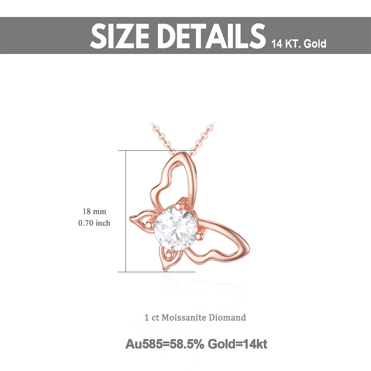 14K Rose Gold Circular Shaped Moissanite Butterfly Pendant Necklace
