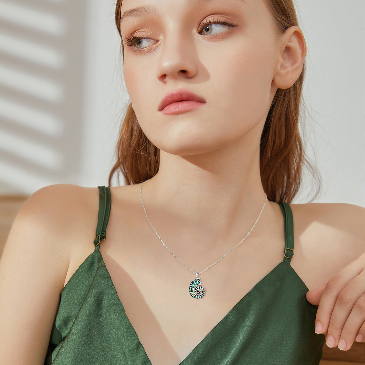 This Sterling Silver Abalone Shellfish Conch Pendant Necklace by YFN evokes the tranquil beauty of the ocean through its captivating combination of abalone shellfish and conch motifs. The iridescent colors reflect light beautifully, symbolizing renewal, intuition, and the soothing rhythm of the sea. Plated in elegant white gold, the necklace offers durability with a luxurious sheen, enhancing the organic details of the design. Ideal for women who appreciate nature-inspired elegance, this versatile pendant enhances both casual and refined looks. It becomes a wearable reminder of serenity, adventure, and the artistry of oceanic beauty.
