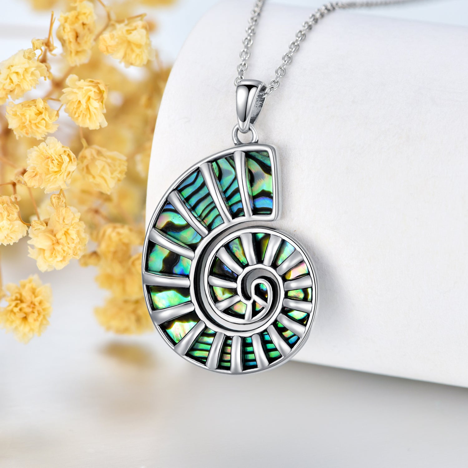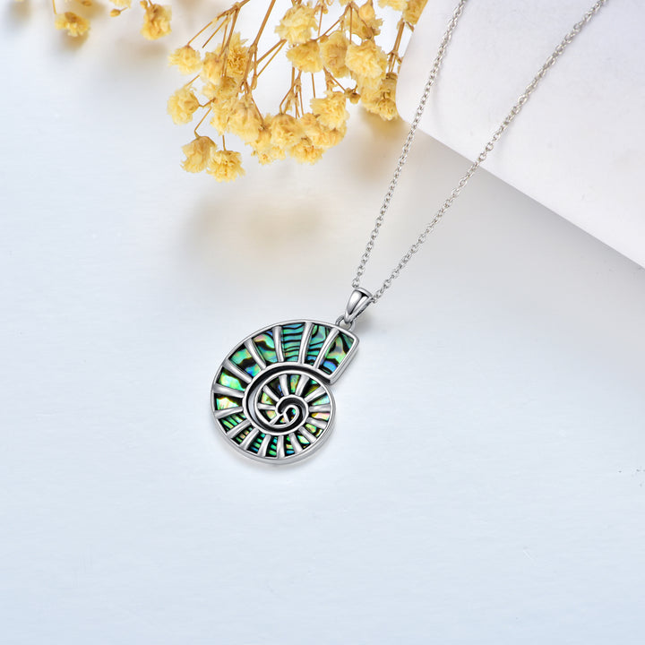 Sterling Silver Abalone Shellfish Conch Pendant Necklace