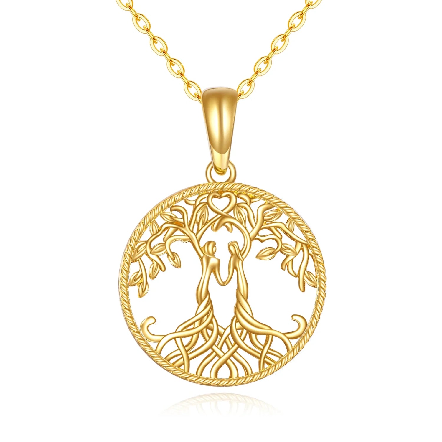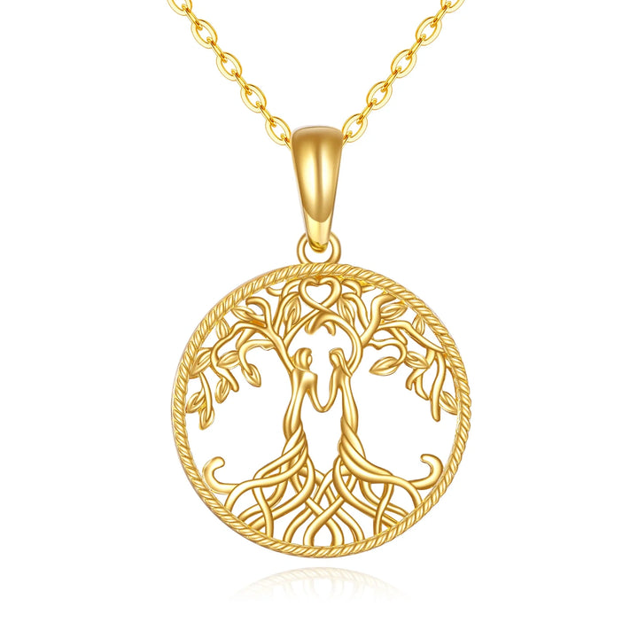14K Gold Tree Of Life & Sisters Pendant Necklace