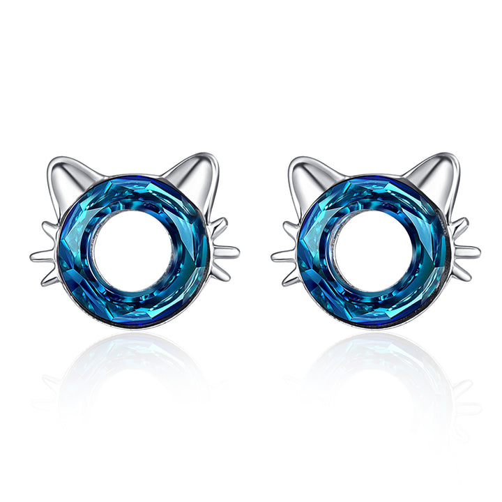 Sterling Silver Blue Crystal Cat Stud Earrings