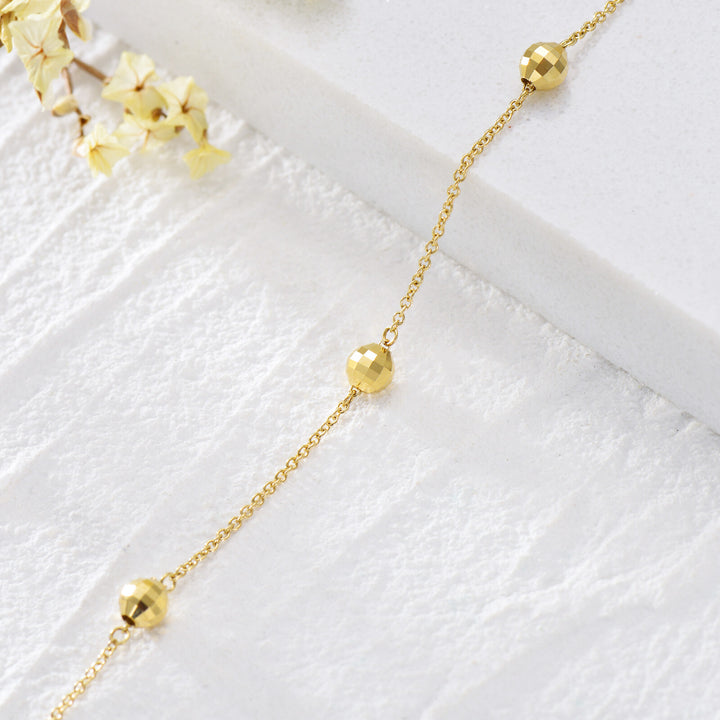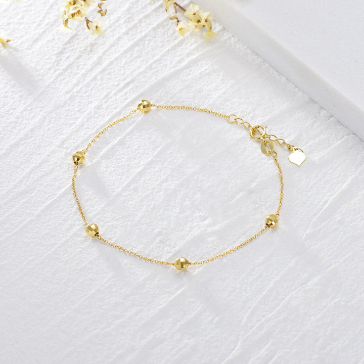 14K Gold Bead Bead Station Chain Bracelet For Women
