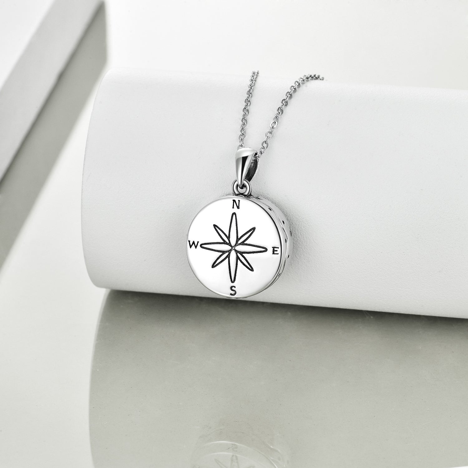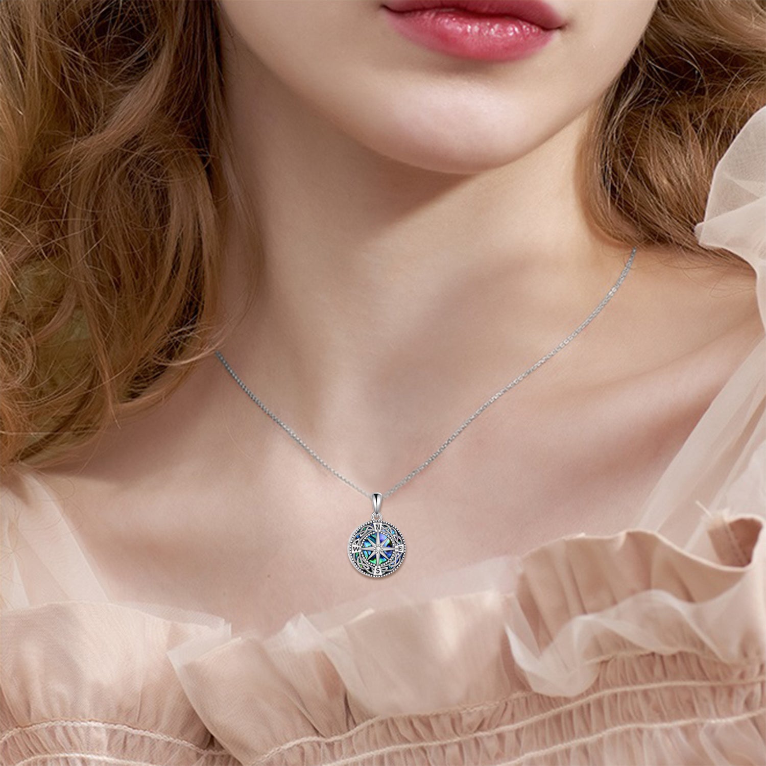 Crafted in sterling silver with abalone shell inlay. Features compass and Celtic knot motifs. Functional urn compartment. Chain and pendant dimensions per brand specifications.