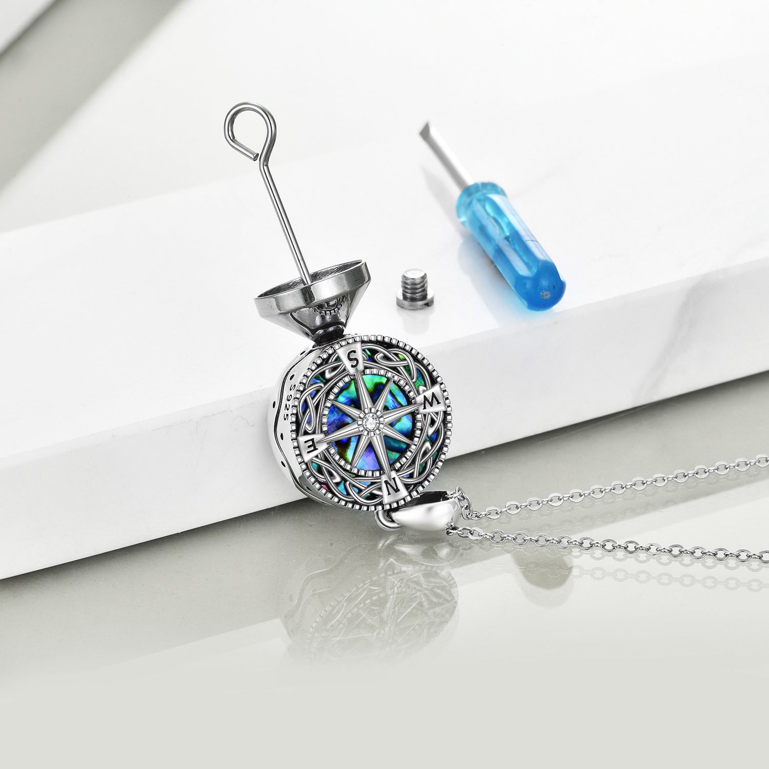 Sterling Silver Abalone Shellfish Compass & Celtic Knot Urn Necklace for Ashes