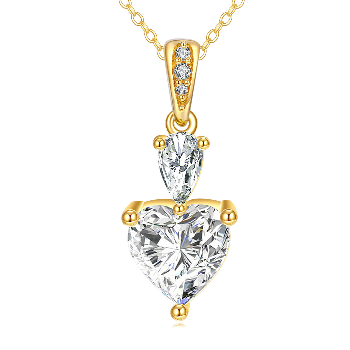 14K Gold Pear Shaped & Heart Shaped Moissanite Pendant Necklace