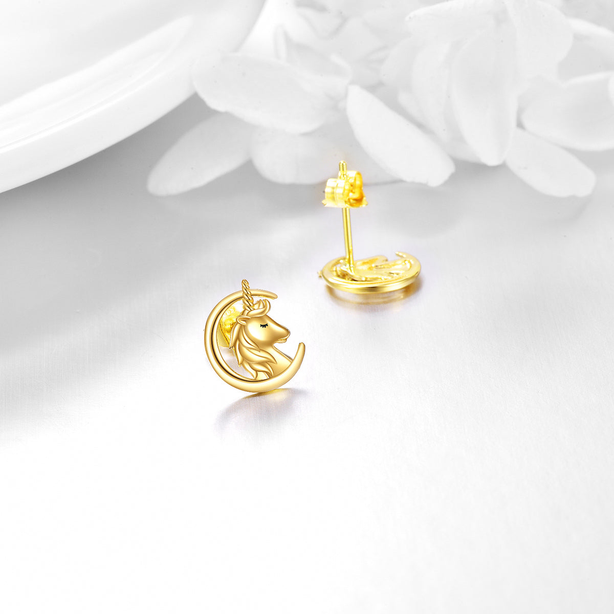 Crafted from 14K Gold, these stone-free Stud Earrings feature whimsical Moon and Unicorn designs.