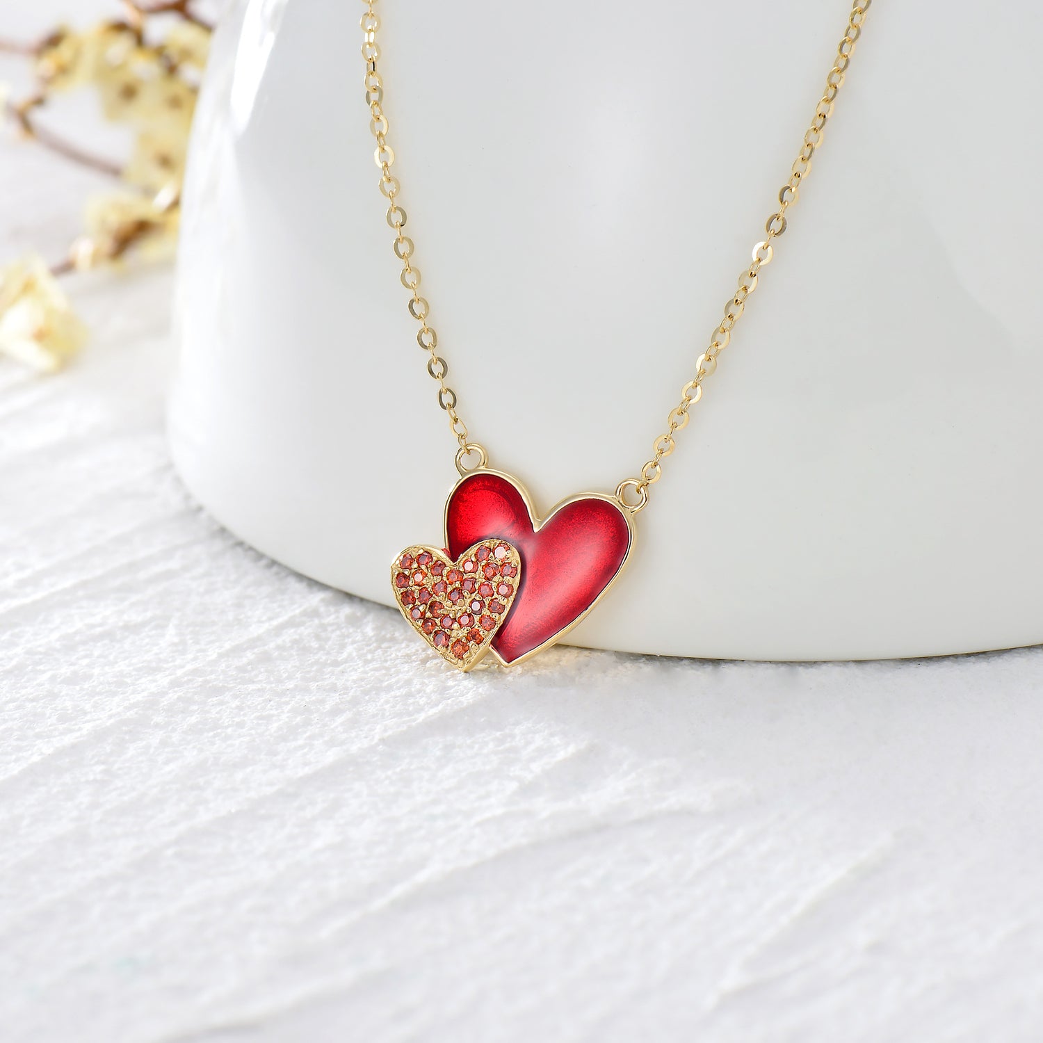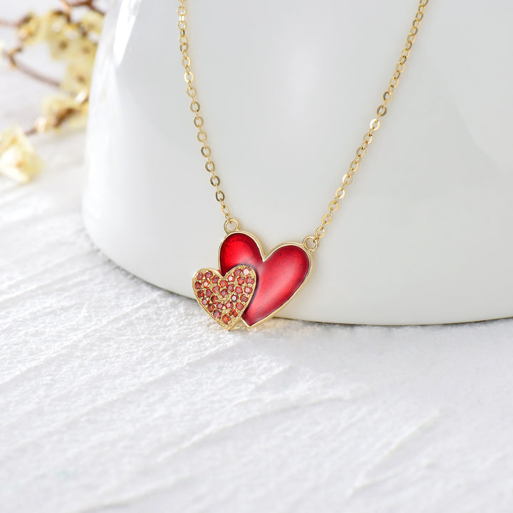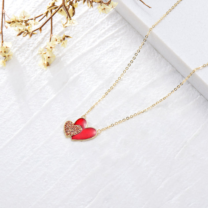14K Gold Heart Cubic Zirconia With Heart Pendant Necklace For Women Best Friends