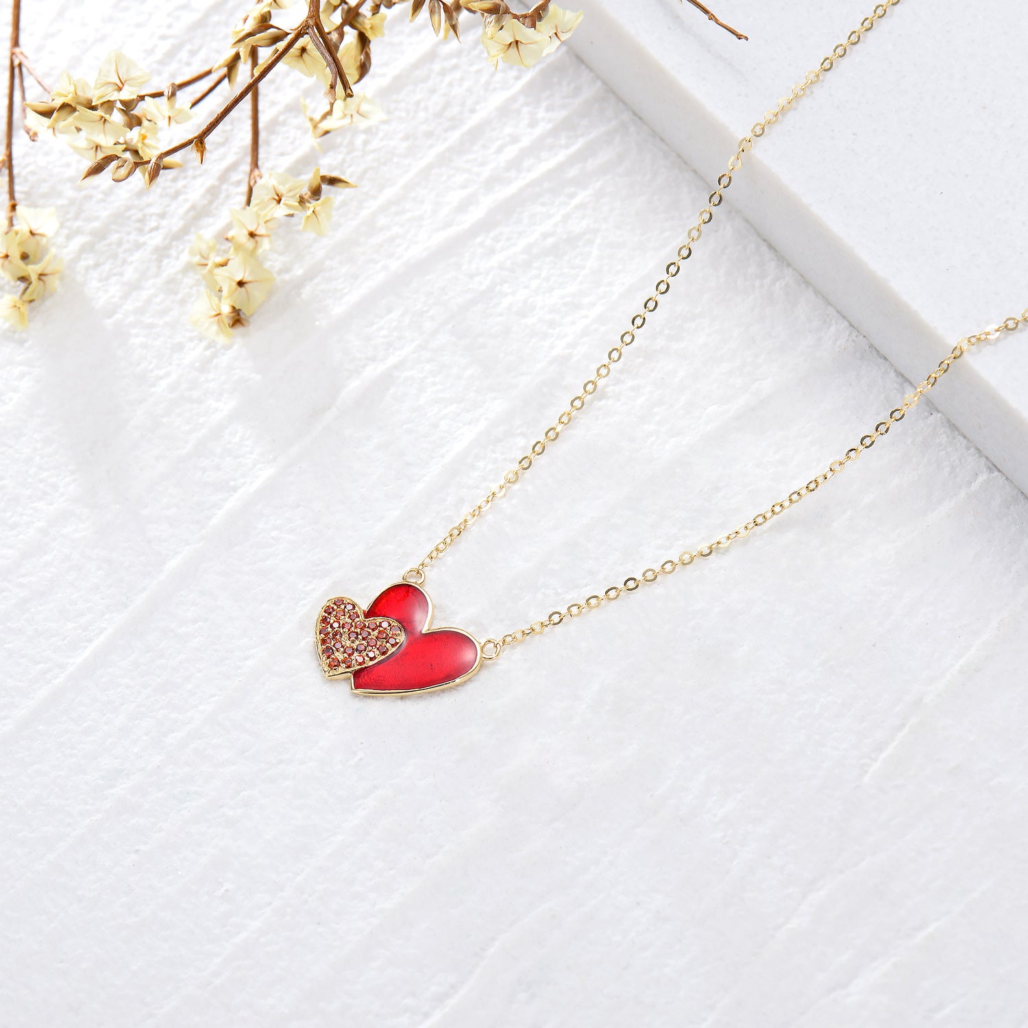 This 14K Gold Heart Cubic Zirconia with Heart Pendant Necklace by YFN offers a romantic expression through its heart-within-heart motif. The red center heart and surrounding CZ stones create eye-catching contrast, making it perfect for gifting or symbolic self-expression.