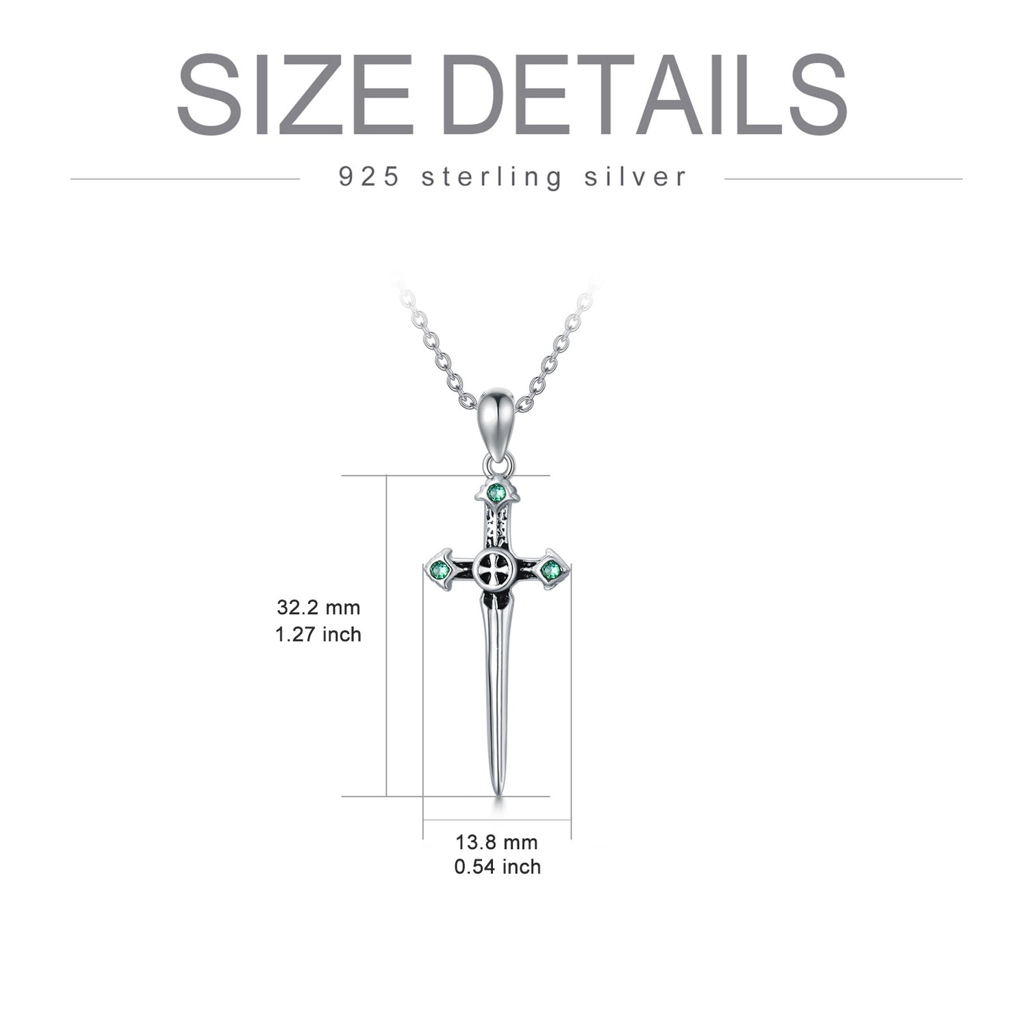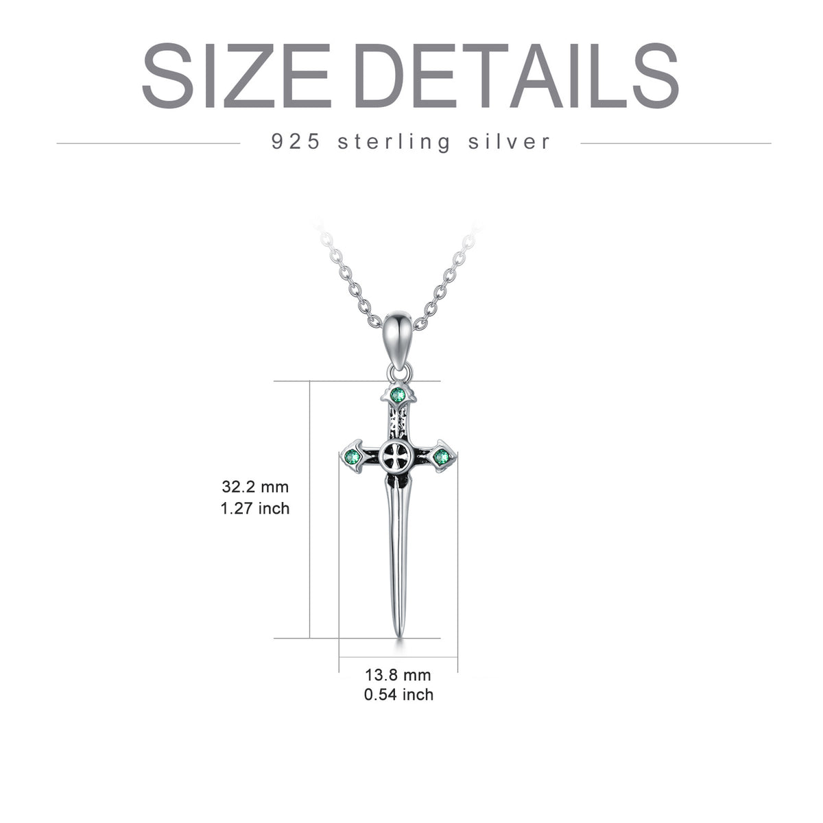 Crafted from Sterling Silver with a Retro Silver finish. This is a Circular Shaped Pendant Necklace featuring Cross & Sword motifs, set with Green Crystal stones.