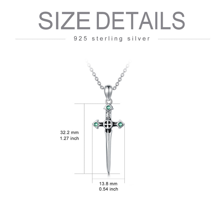 This Sterling Silver Circular Shaped Crystal Cross & Sword Pendant Necklace by YFN is an exquisite, timeless Retro Silver piece for women who appreciate elegance with an edge. The circular sterling silver pendant deftly integrates a Cross and Sword motif, accented with sparkling green crystals. This unique design adds a distinctive and memorable touch, standing out with sophisticated style and meaningful symbolism.