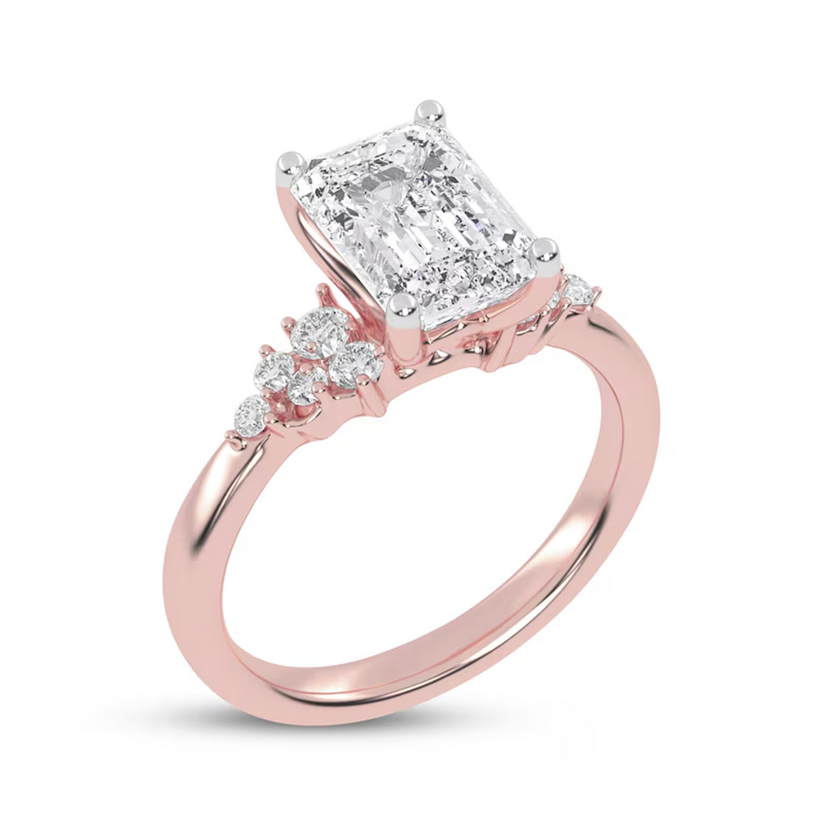 14K Rose Gold 0.75 to 3.25 CT.T.W. Emerald Lab Created Diamond Engagement Ring D-VVS1 3EX IGI Certified