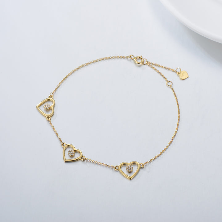 This Charm Bracelet is crafted from 14K Gold, featuring a Heart Charm with a sparkling Moissanite gemstone.