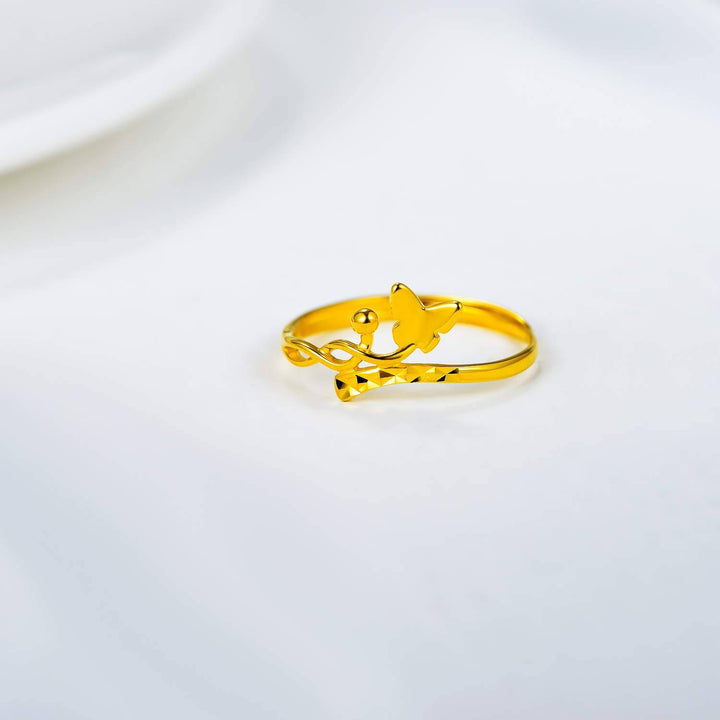 This no-stone Open Ring is crafted from High-Quality 18K Gold, Featuring a Beautifully Designed Butterfly Motif.