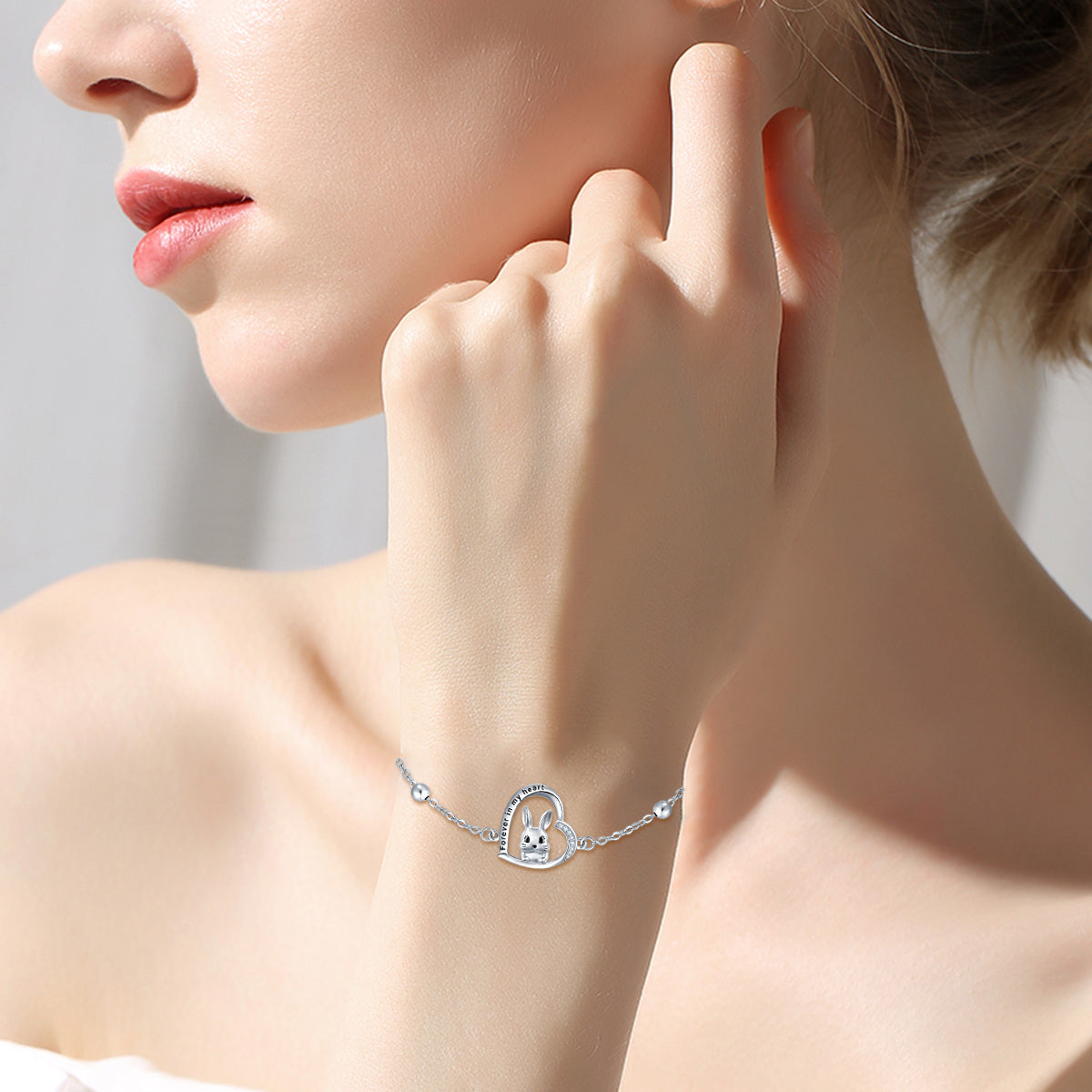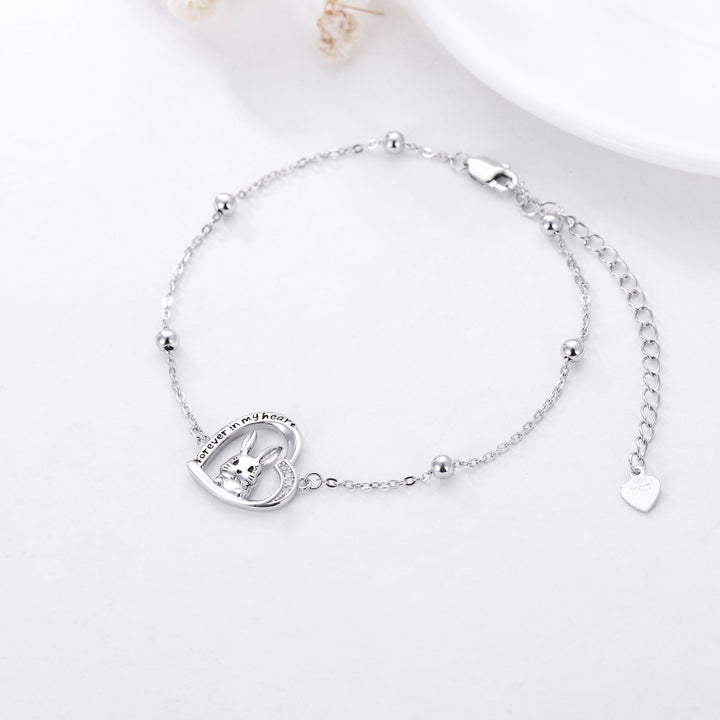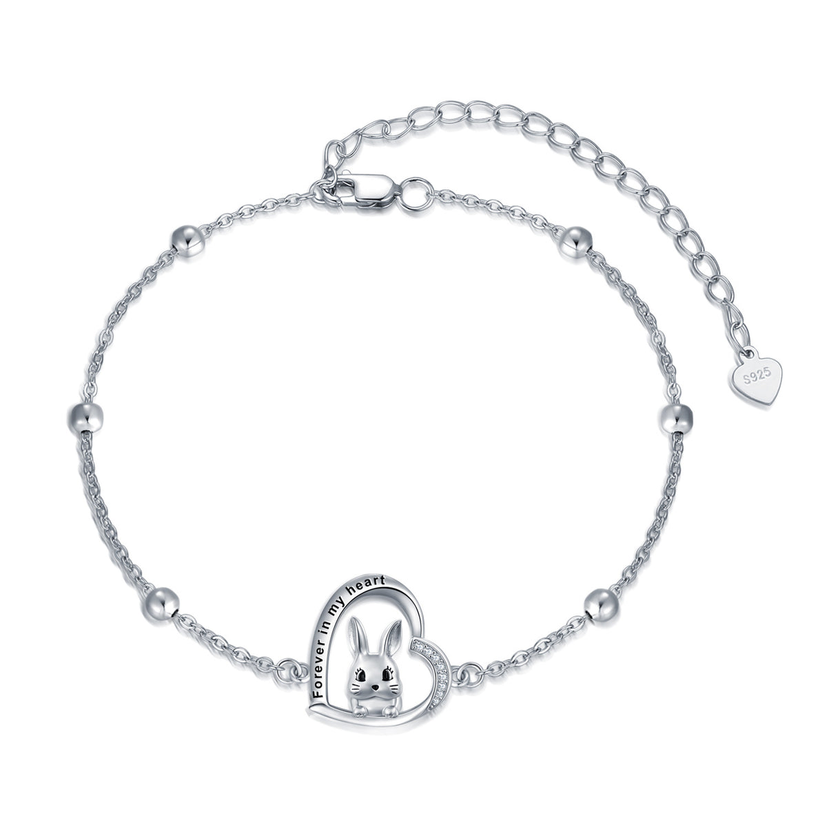 Sterling Silver Zircon Rabbit Charm Bracelet