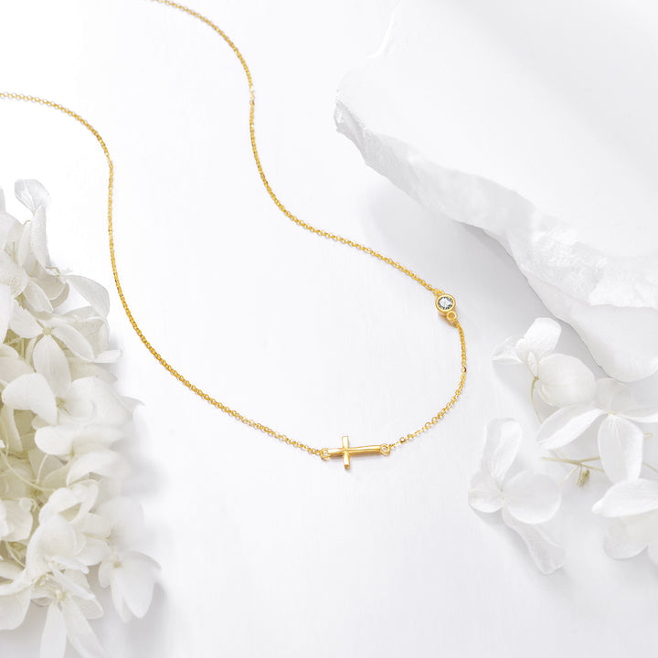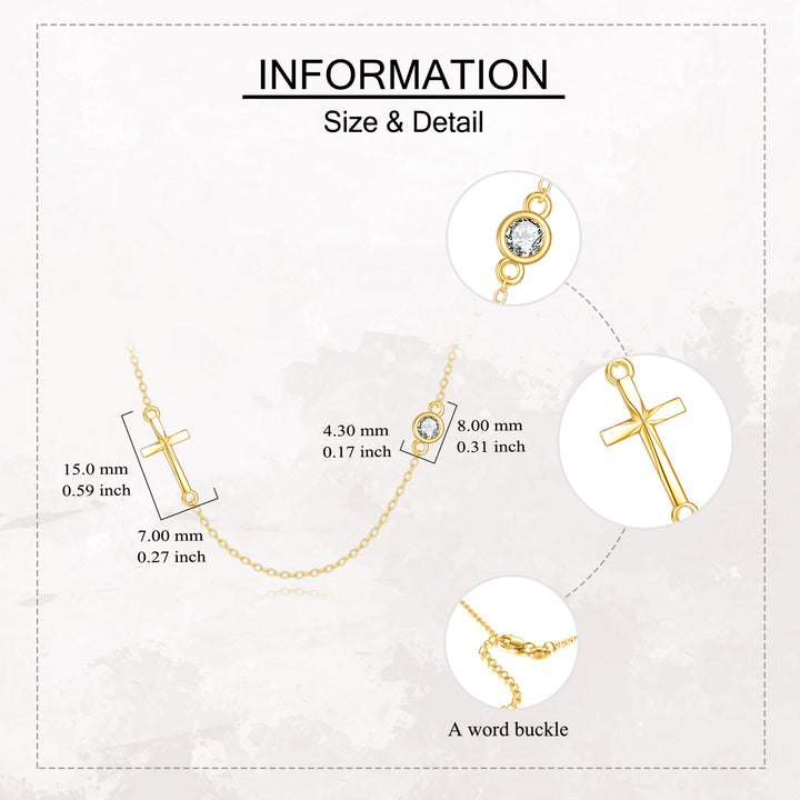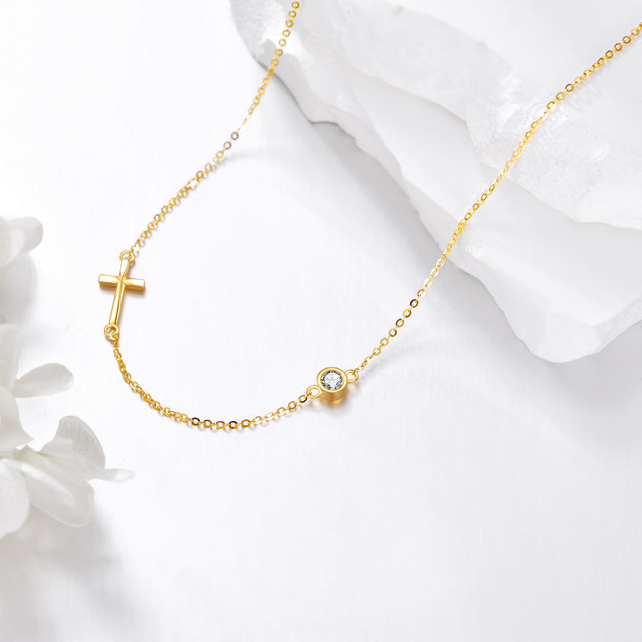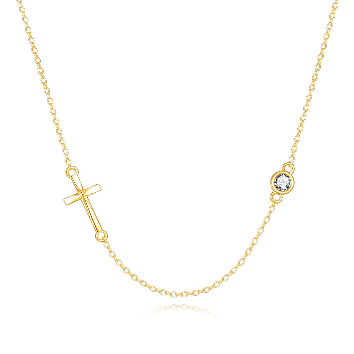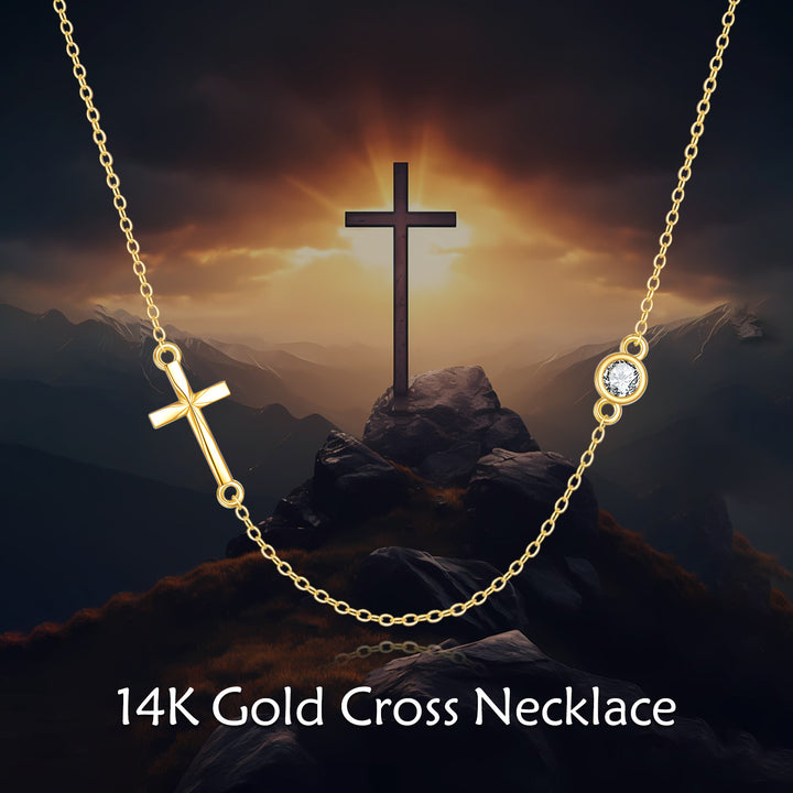 14K Gold Circular Shaped Cubic Zirconia Cross Pendant Necklace