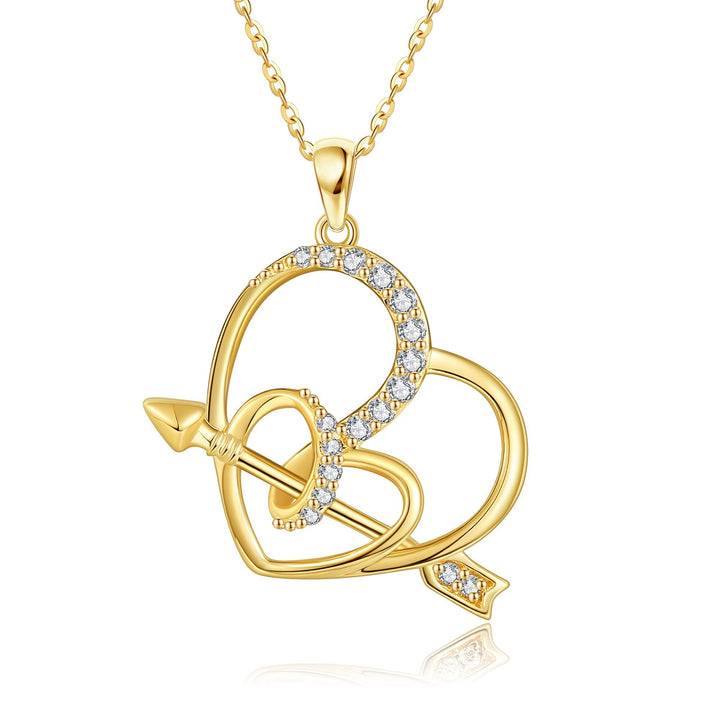 14K Yellow Gold Circular Cubic Zirconia Arrow & Heart Pendant Necklace