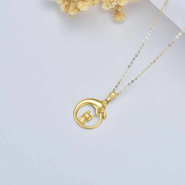 Crafted from premium 14K Gold, this stone-free Pendant Necklace features a sleek Cat silhouette motif.