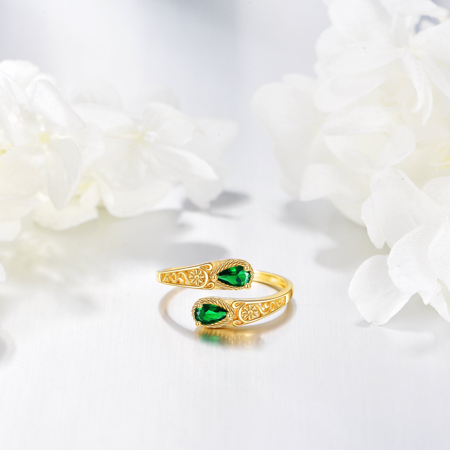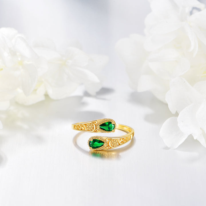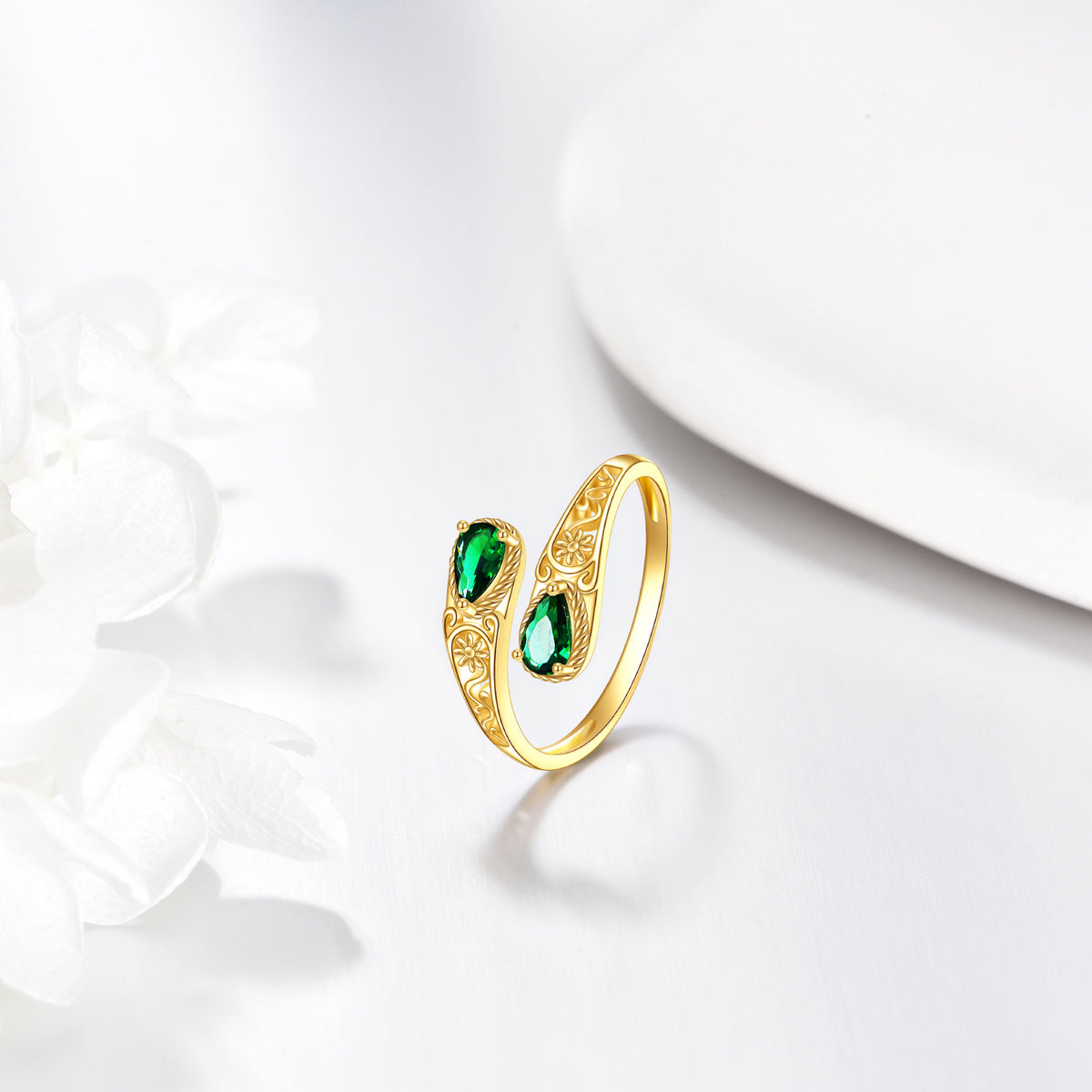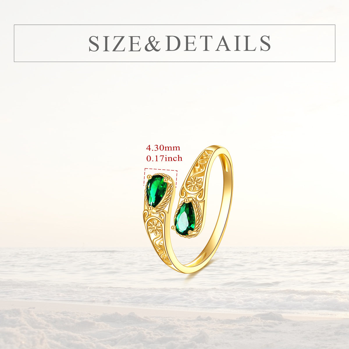 14K Gold Pear Shaped Emerald Flower Open Ring
