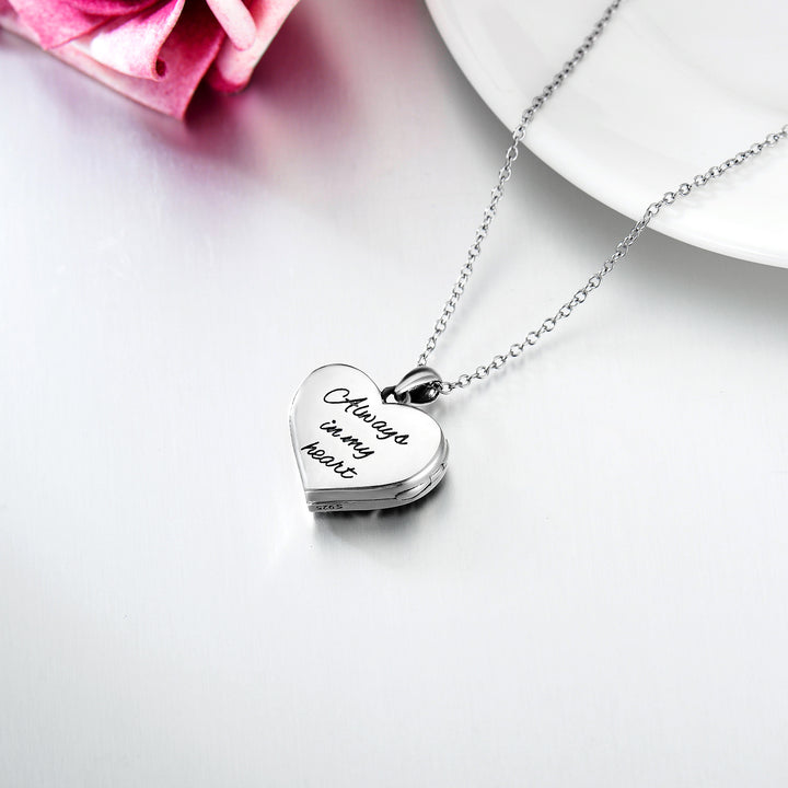This no-stone Photo Locket Necklace is crafted from High-Quality Sterling Silver with a Retro Silver Finish, Featuring a Circular, Heart-Shaped Design.
