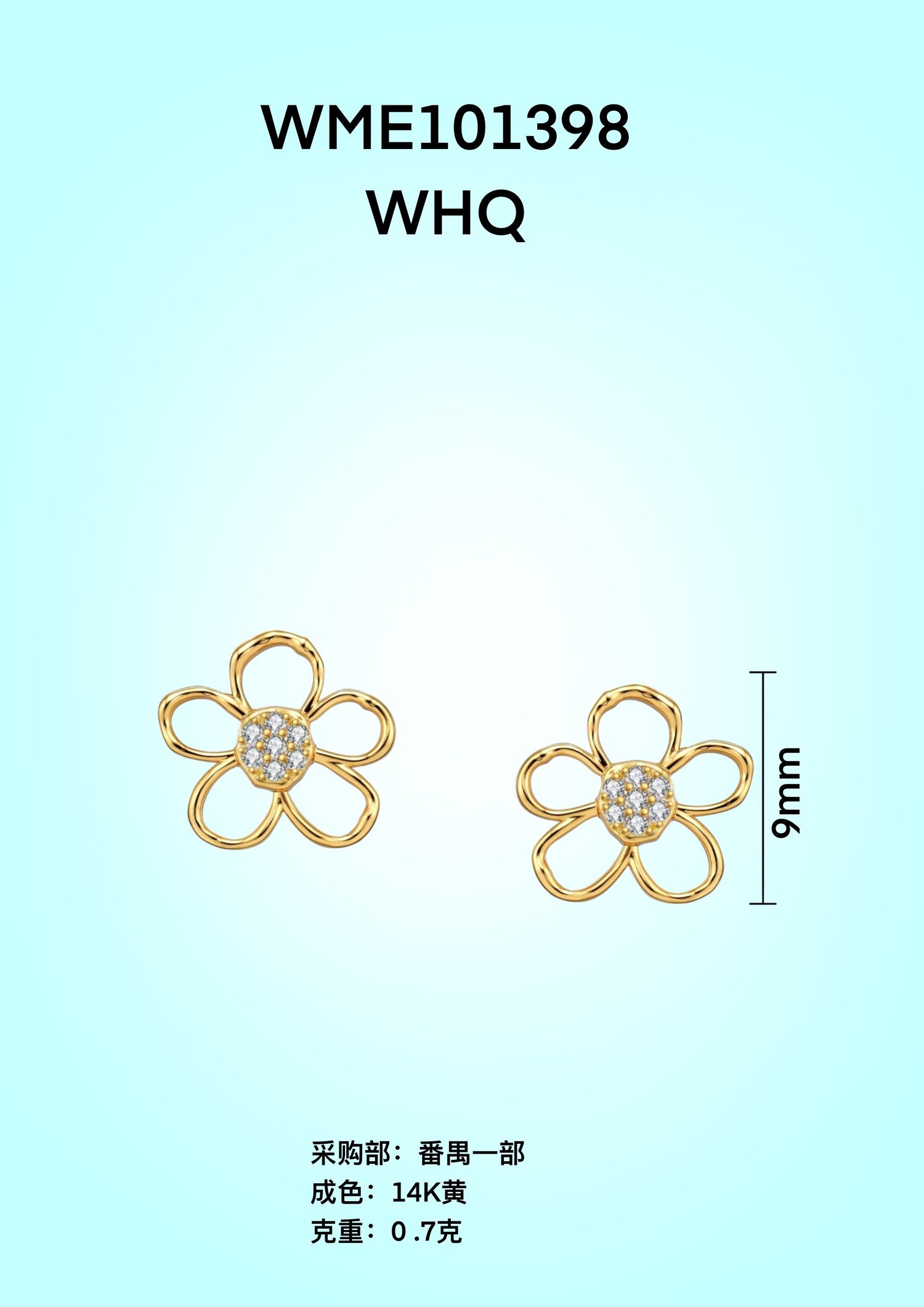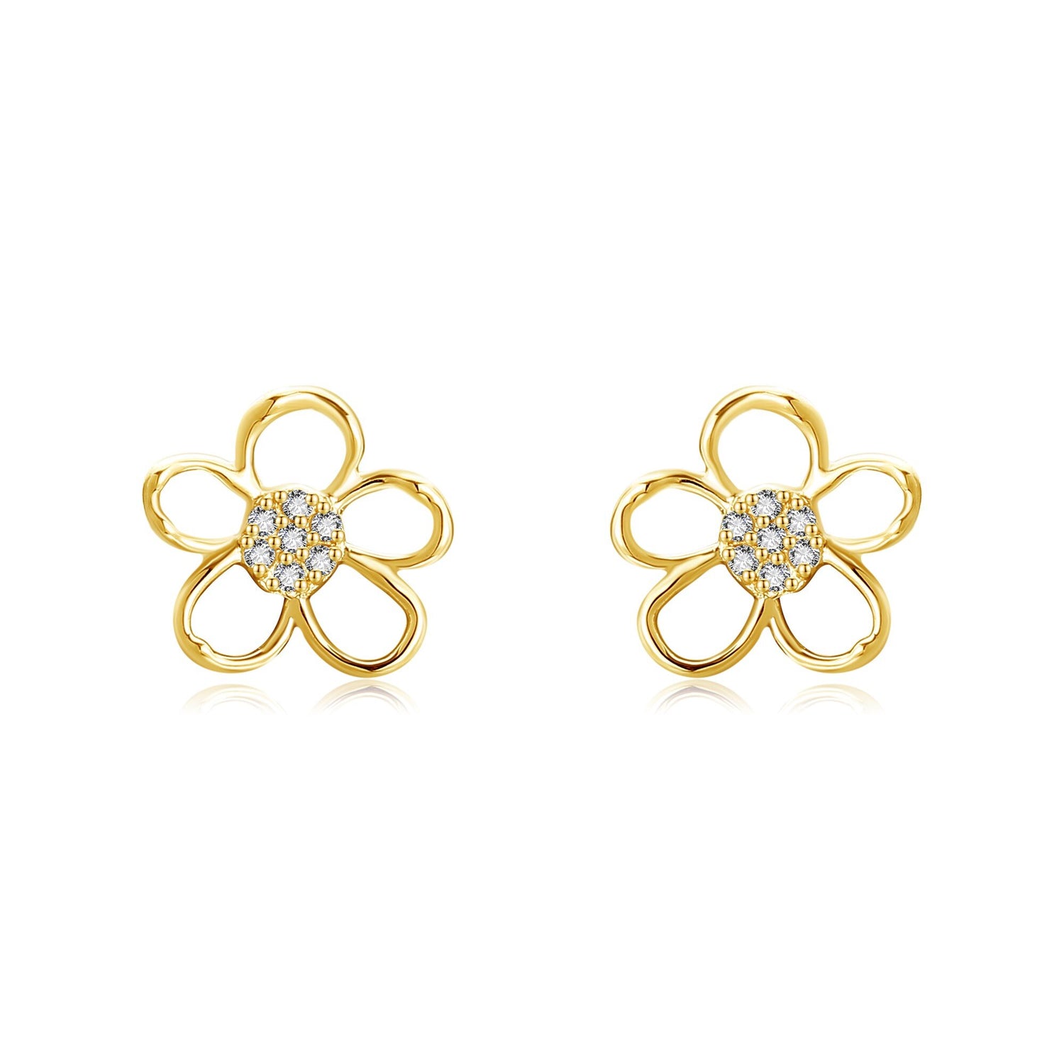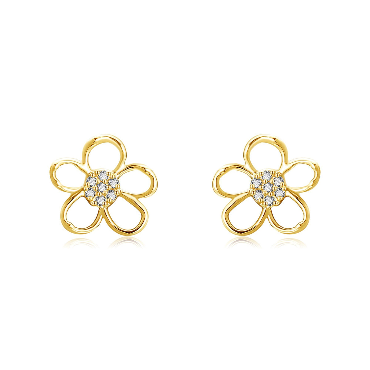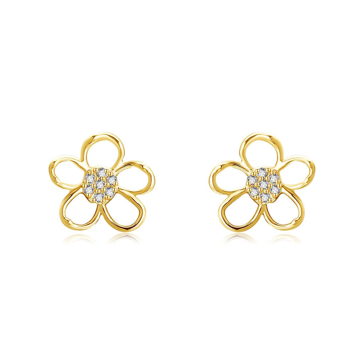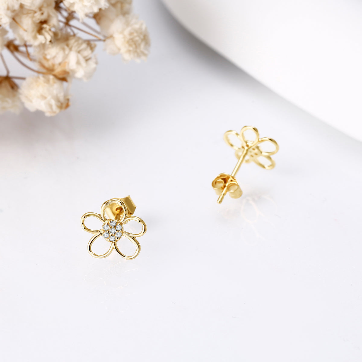 14K Gold Cubic Zirconia Wildflowers Stud Earrings