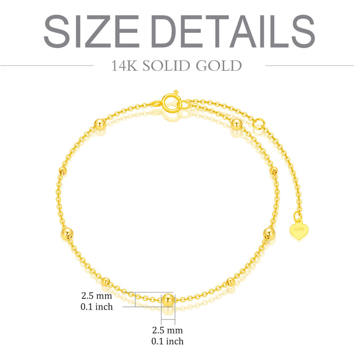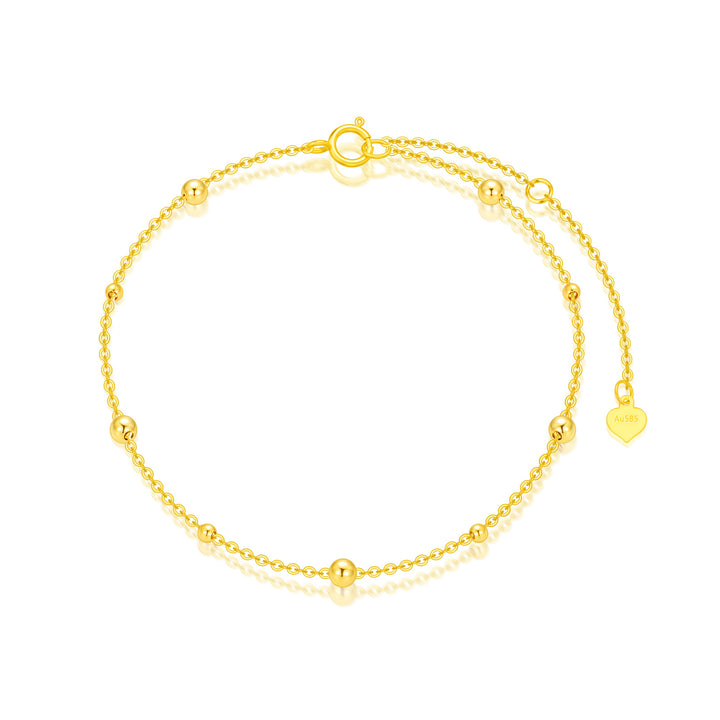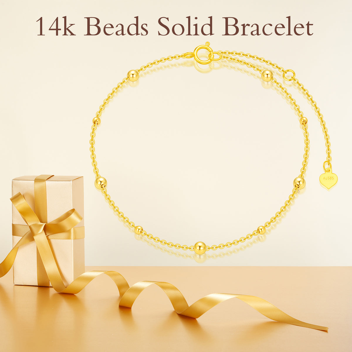 Bead bracelet crafted from solid 14K gold. Features multiple metal beads. No set gemstones. Bracelet length 7 inches with a lobster clasp closure.
