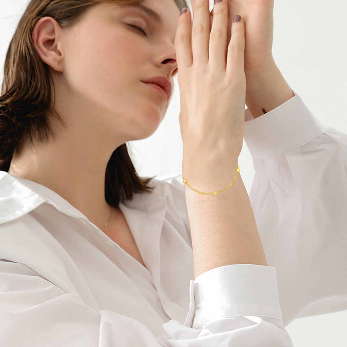 This Bead Metal Beads Bracelet by YFN is designed for women who cherish minimalist yet sophisticated jewelry. Expertly crafted from premium 14K Gold, this exquisite bracelet features a captivating arrangement of lustrous metal beads. The no-stone design highlights the pure beauty of the metal, offering understated luxury that is lightweight, comfortable, and perfect for layering or wearing solo.