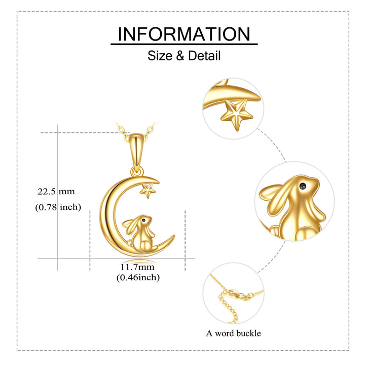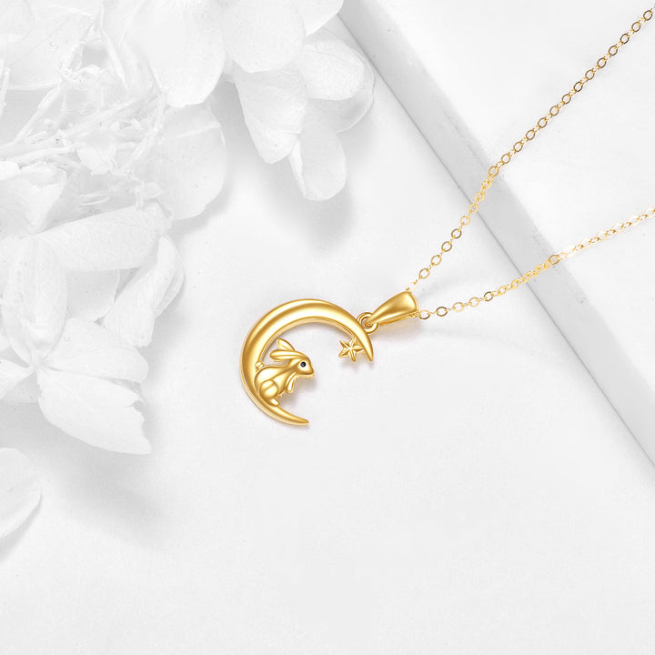14K Gold Rabbit & Moon Pendant Necklace