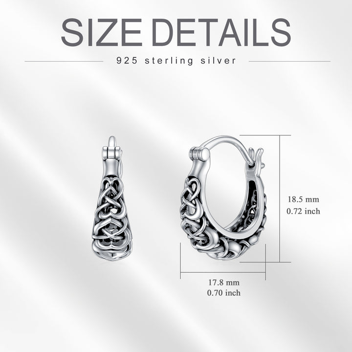 Crafted from high-quality Sterling Silver with a Retro Silver finish, these no-stone Hoop Earrings feature a refined Celtic Knot motif.