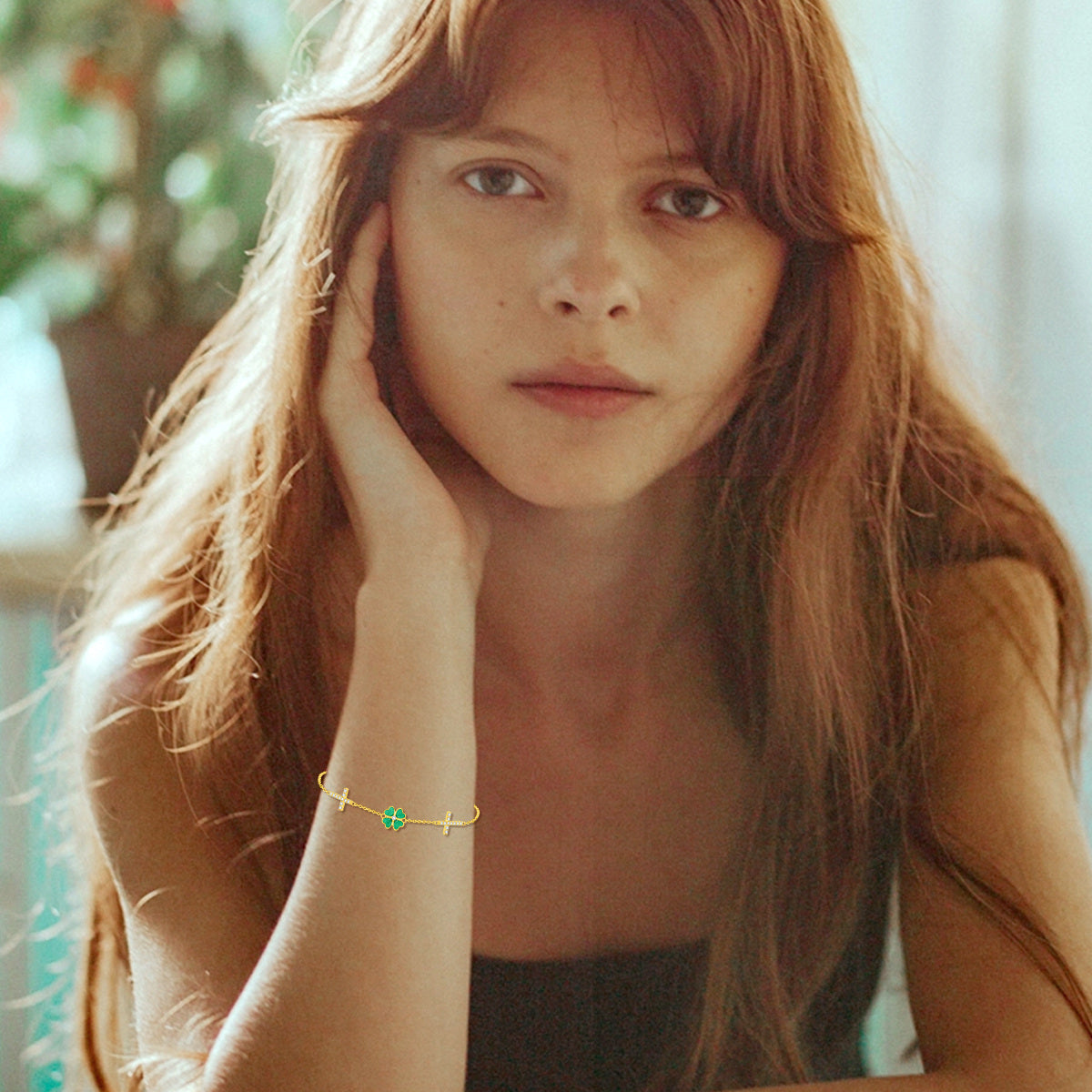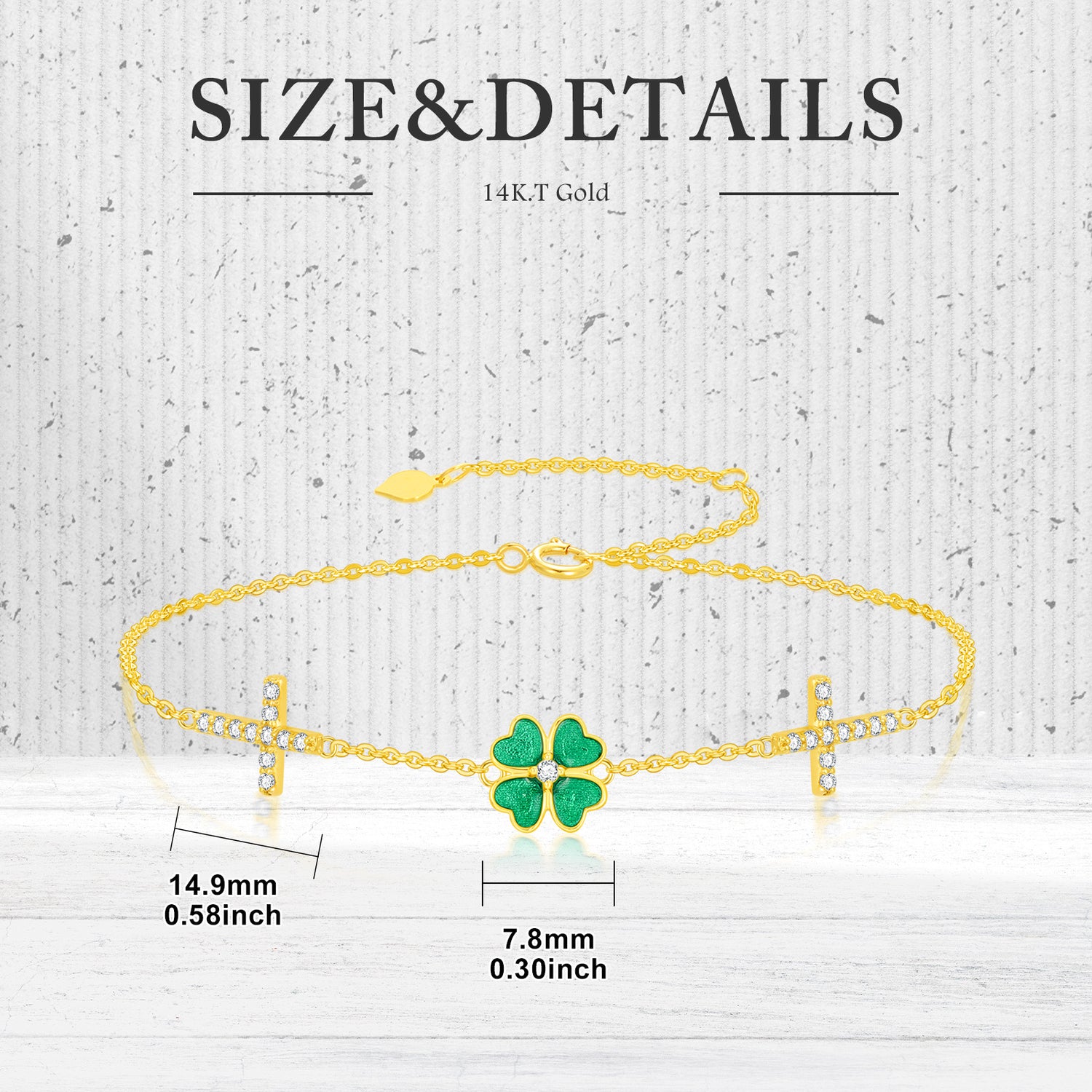 This 10K Gold Circular Shaped Moissanite Four Leaf Clover Charm Bracelet by YFN is the epitome of elegance and charm for women. This stunning 10K gold bracelet showcases a circular-shaped, clear moissanite at its heart, set in a delicate four-leaf clover motif, blending luxury, luck, and meaningful design.
