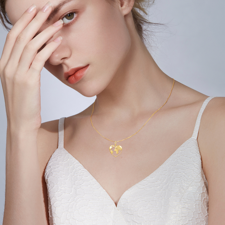 This 14K Gold Heart Map Pendant Necklace by YFN is a no-stone, exquisite heart pendant necklace for women who appreciate timeless, elegant simplicity. Crafted from high-quality 14K gold without any stones, the delicate heart-map design symbolizes love and connection. Lightweight and versatile, this piece complements both casual and formal outfits, adding a touch of sophisticated charm that is a true testament to enduring craftsmanship.