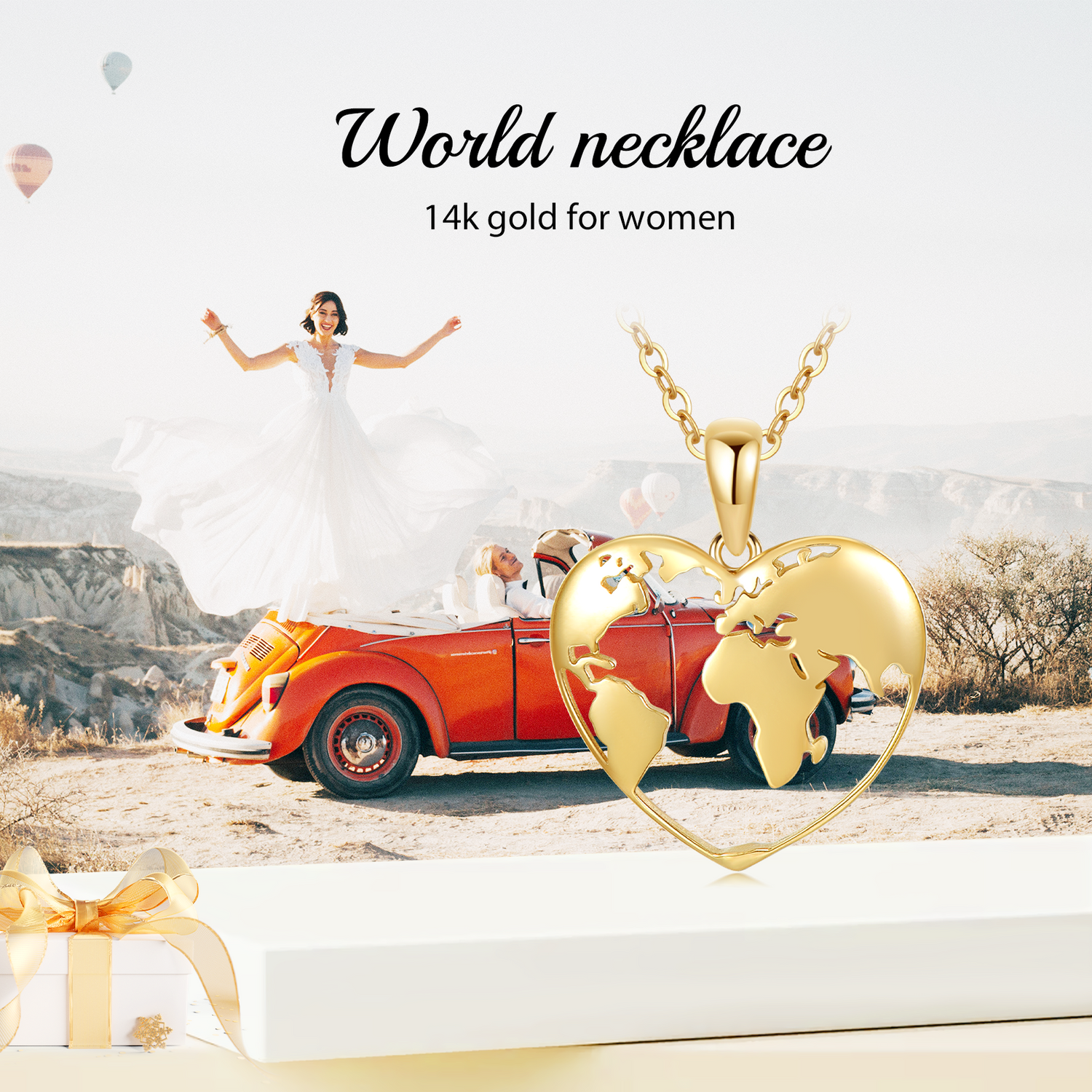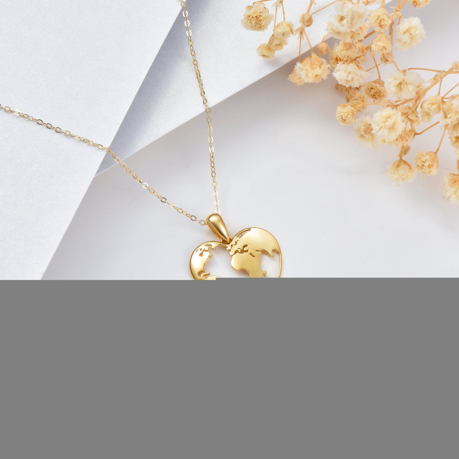 This no-stone Heart Pendant Necklace is crafted from High-Quality 14K Gold and features a Delicate Map Design.